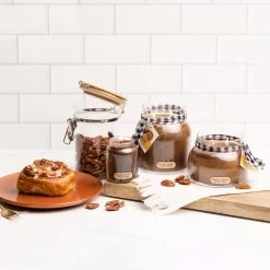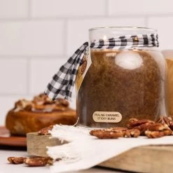 PRALINE CARAMEL STICKY BUNS: Warm vanilla extract swirled with caramel, brown sugar, butter & pecans. Fill your entire house with the delectable charm of home sweet home embodied in our strong scented candles. All of our candles are proudly made in the USA.