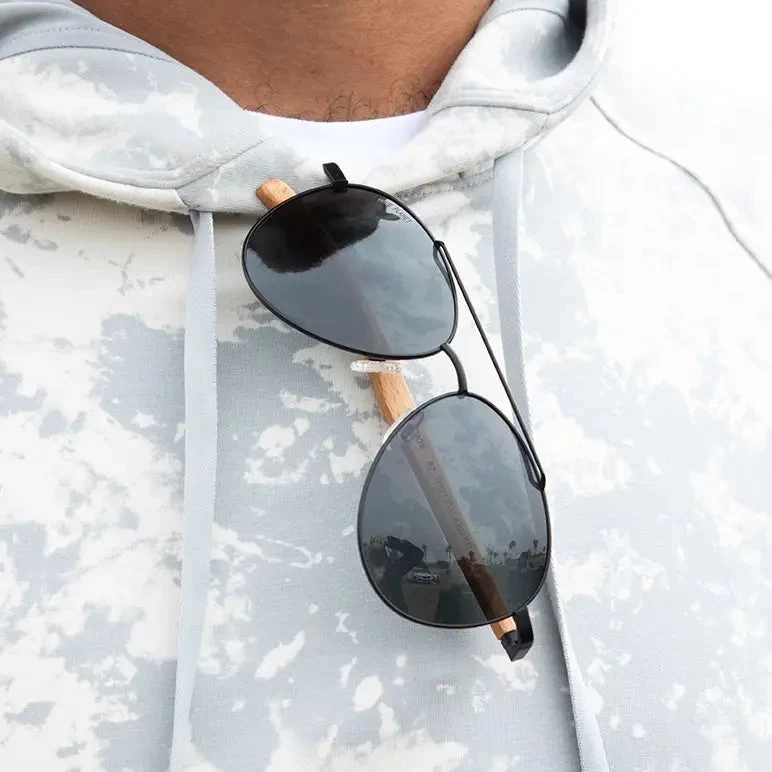 Introducing Amador Sunglasses in Matte Onyx & Beechwood: the epitome of luxury and sustainability. Our signature aviator style features Natural Beechwood temples, spring hinges, and 100% UVA/UVB polarized lenses. Not only will you look stylish, but you’ll also be protecting your eyes while making a positive impact on the environment. Complete with a woven case and cleaning cloth.