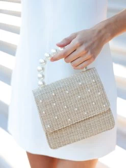 The Aphrodite Mini Bag in Natural combines elegance with playful charm. Featuring a delicate pearl top handle and chic woven texture, this mini marvel is perfect for brunch dates or seaside soirees. Compact in size but big on style, it can be carried by hand or worn crossbody with its dainty gold chain strap. Whether for casual day looks or elevated evenings, the Aphrodite Mini Bag adds a fresh, feminine touch to any outfit. Pair it with other items from the Coastal Style Collection to complete your look!
