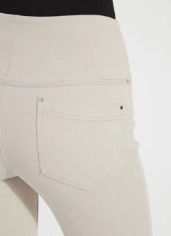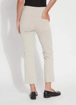 Elevate your denim collection with our ankle Denim Baby Bootcut in Neutrals. Designed with a slight leg flare and 4-way stretch Knit Denim, these ankle-length pants offer both style and comfort. The concealed patented waistband, back patch pockets, and anatomical seaming create a flattering silhouette.