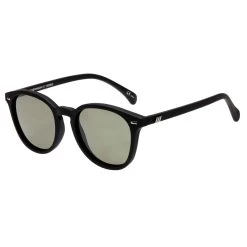 Introducing Bandwagon Sunglasses, the epitome of timeless elegance. With vintage details and a refined design, this midsize style boasts a black rubber frame, keyhole nose bridge, and gunmetal rivet detailing. Perfect for any occasion, complete the sophisticated look with Le Specs flagstripe metal hardware.