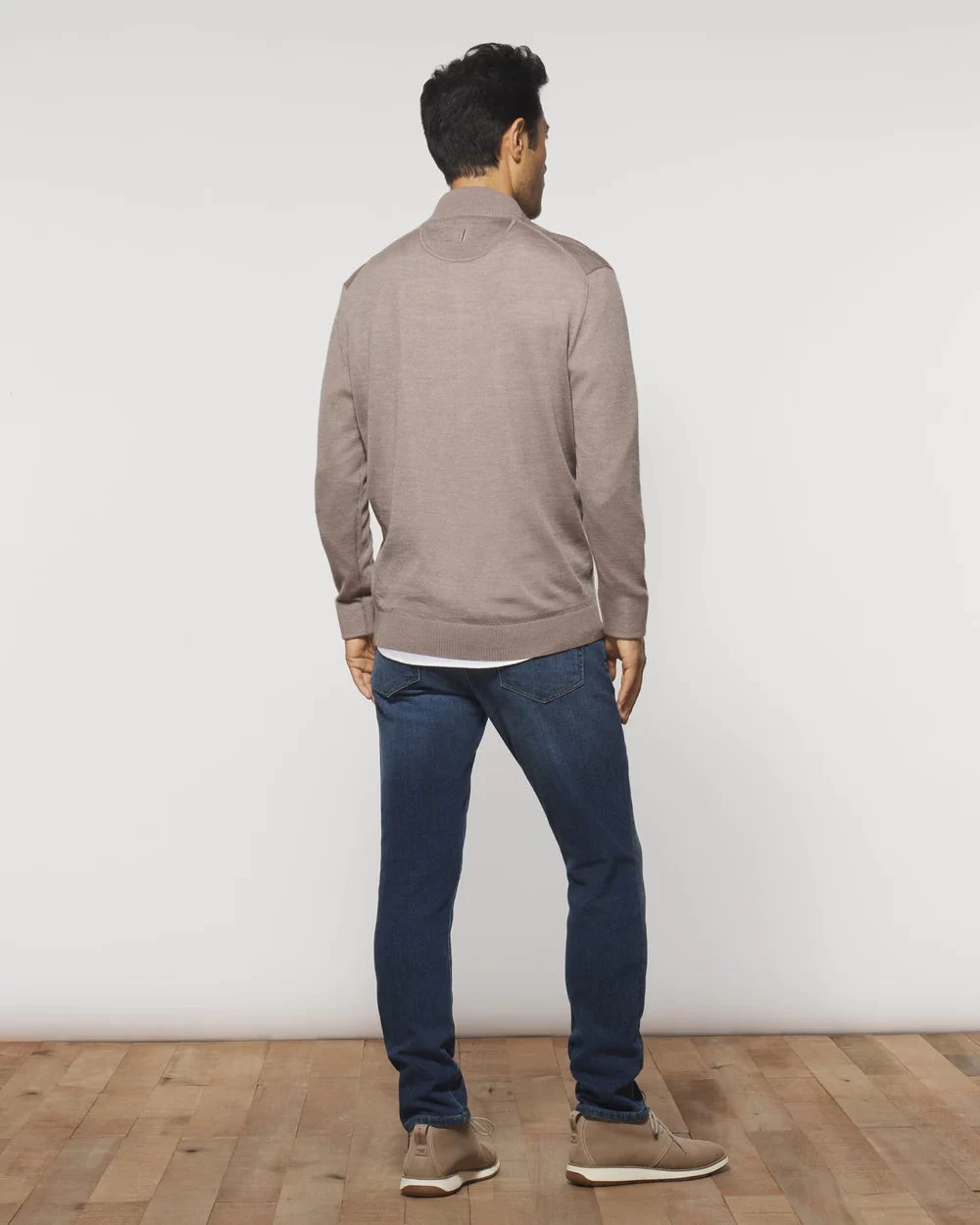 The Baron 1/4 Zip Pullover Sweater in Oatmeal is the perfect combination of comfort and style. Crafted with a luxuriously soft wool and lyocell fabric blend, the sweater is designed with comforting ribs on the cuffs and neck. Signature detailing like alcantara suede trim placket and the JO surfer logo on the back neck truly elevate this timeless silhouette to the next level.