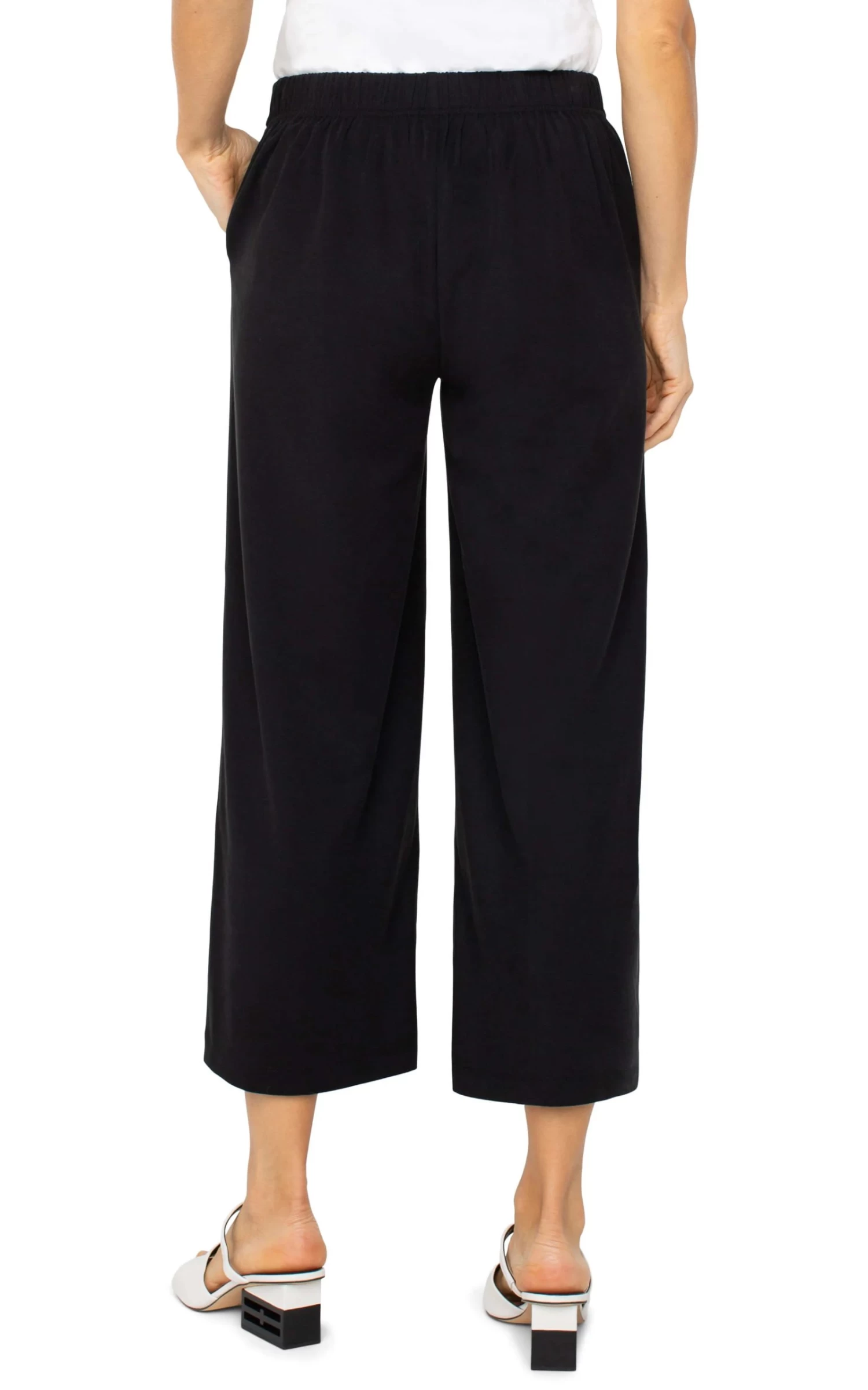 Introducing our Black Wide Leg Crop Trouser, designed for both comfort and style. Its pull-on design allows for easy wear, creating endless outfit possibilities. Pair with a casual top and denim jacket for a chic, yet relaxed look, or coordinate with its matching top for an elevated ensemble.