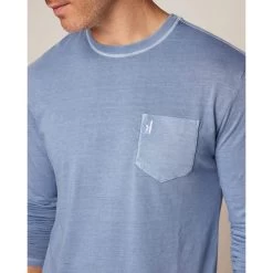 The Brennan 2.0 Long Sleeve T-Shirt by Johnnie O redefines the everyday tee with a sophisticated touch. Crafted from an ultra-soft cotton modal blend, this premium men’s long sleeve t-shirt delivers all-day comfort, a tailored fit, and superior durability. The deep Navy hue, garment-dyed finish, chest pocket, and signature Johnnie O surfer logo bring a polished look to your elevated casualwear collection.