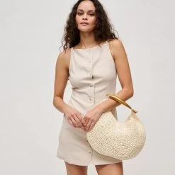 Embrace effortless charm with the Brielle Crossbody in Ivory, a beautifully woven straw bag that captures the essence of laid-back, natural style. Featuring a chic magnetic snap closure, elegant brass handle, and a detachable chain strap, this versatile crossbody offers multiple ways to wear it—from shoulder to handheld. The unlined interior enhances its breezy, casual feel, making it the perfect companion for beach days, brunch outings, or warm-weather getaways. Lightweight yet eye-catching, the Brielle is your go-to for stylish summer accessorizing.
