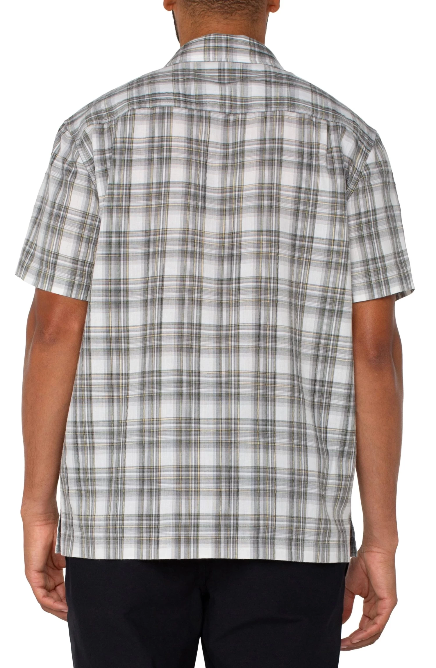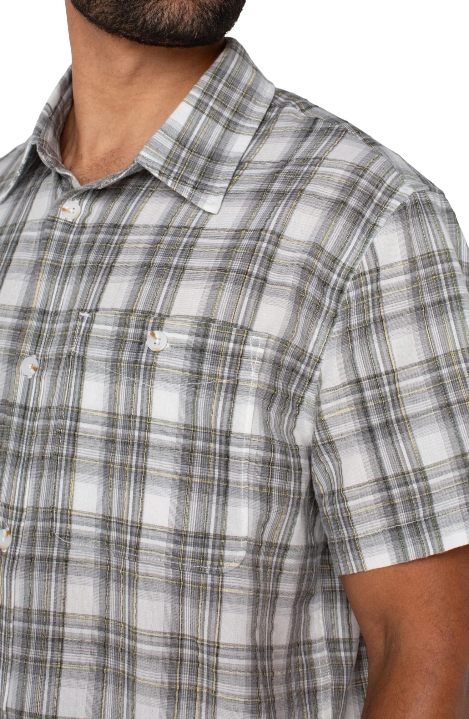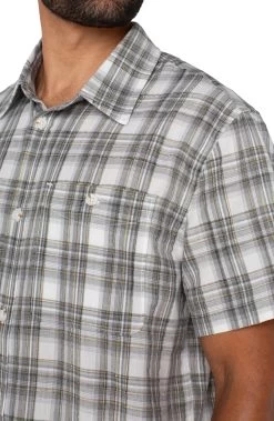 The Button-Up Short Sleeve Shirt in Sage Grey Multi by Liverpool features a classic plaid pattern in versatile tones, making it a go-to piece for any occasion. Designed for effortless styling, this short sleeve shirt pairs perfectly with shorts or jeans for a relaxed look, or can be dressed up with a blazer and chinos for a more polished ensemble. A timeless wardrobe staple with modern appeal.
