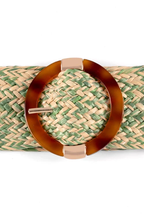Elevate your style with the Camille Belt in Green. The rich green braided texture and circular buckle exude sophistication and luxury. Made to be adjustable and paired with other Shiraleah pieces, this waist accessory is the perfect addition to your summer wardrobe.