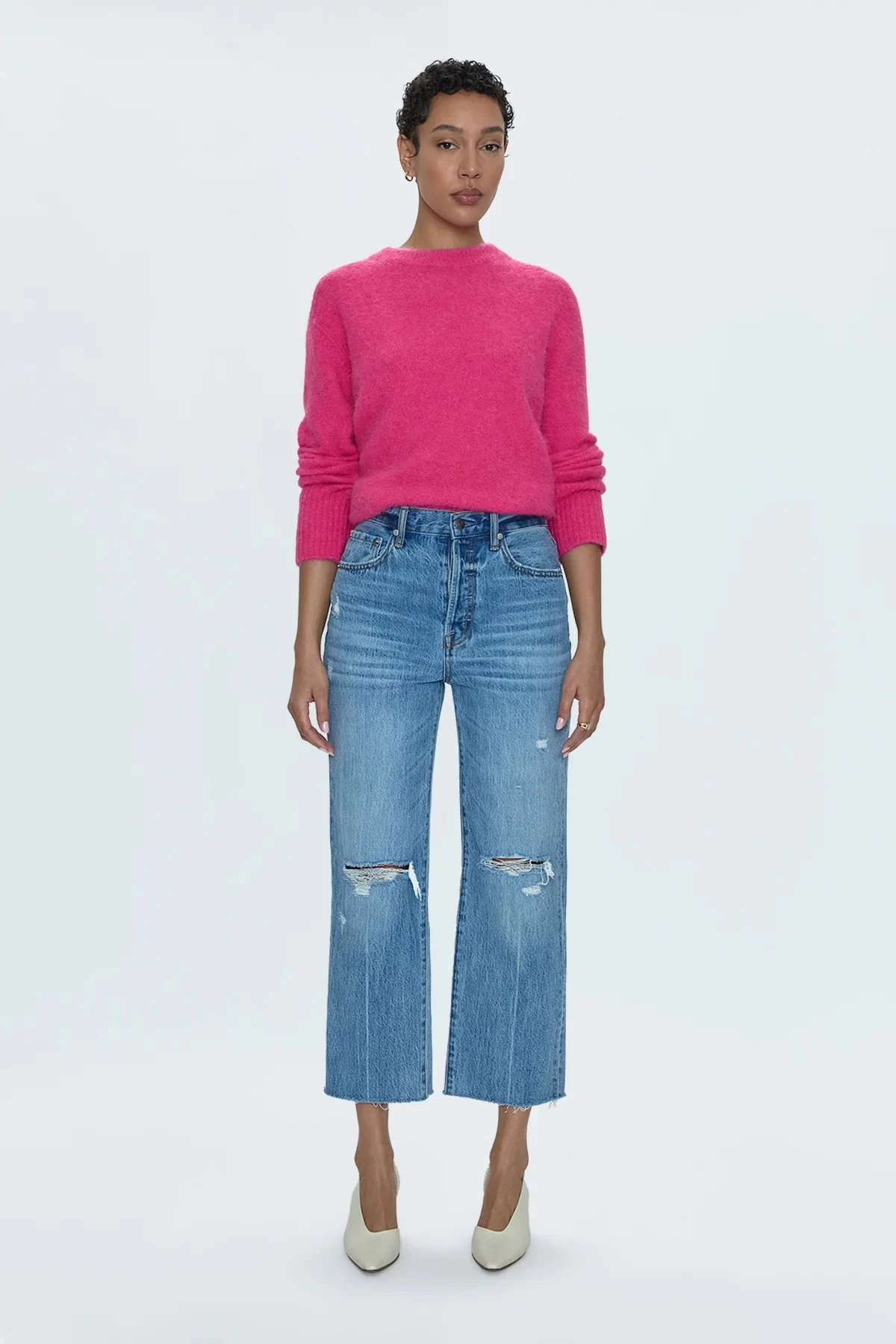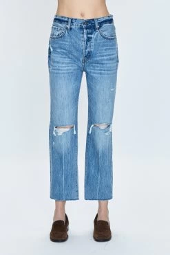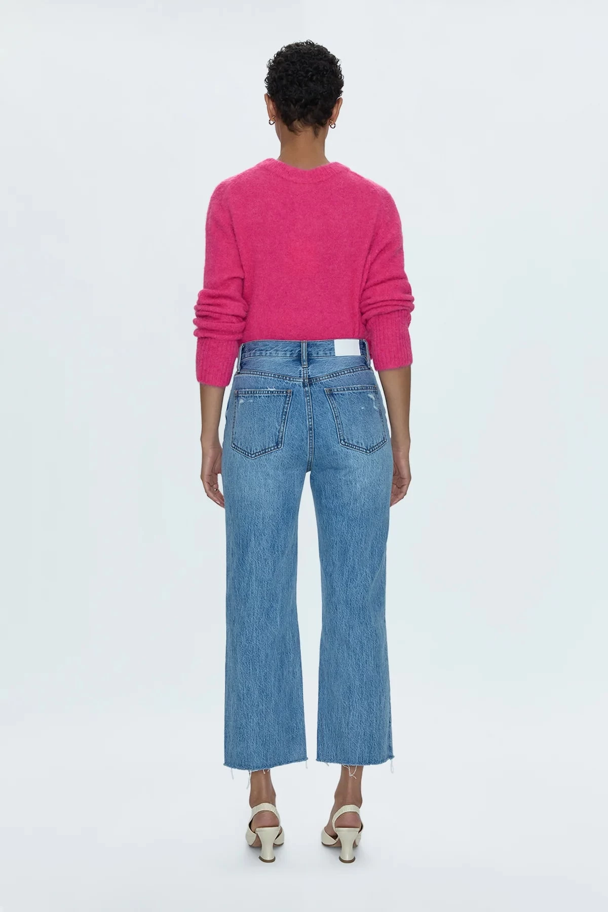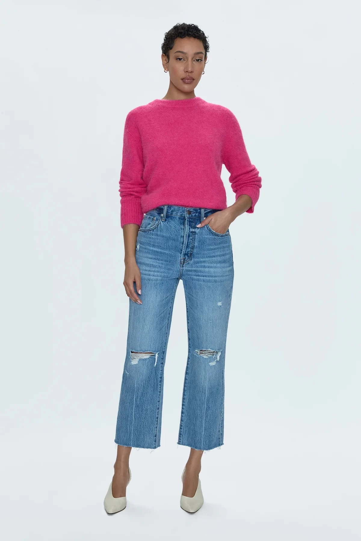 Introducing the Cassie Crop Jeans in Bushwick Distressed. With a stylish and flattering design, these jeans are crafted with premium materials for a luxurious fit. Perfect for any occasion, the Cassie Crop Jeans elevate your style and provide a comfortable and chic silhouette. Upgrade your wardrobe with this must-have piece.