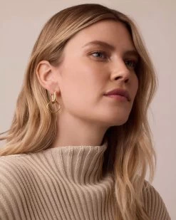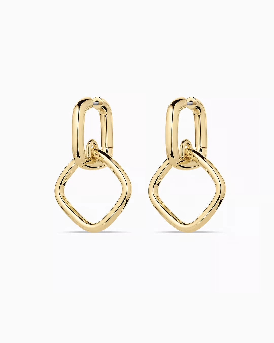Elevate your style with the Charlie Drop Hoops in 18k gold plated. Their unique sculptural shape is designed to make a bold statement, adding a modern touch to any look. Perfectly lightweight, these drop earrings are an ideal choice for a special occasion. Keep your earring stack simple to let these sculptural drop hoops shine as the focal point of your look. With their striking design and 18k gold finish, the Charlie Drop Hoops are sure to turn heads and elevate your ensemble.