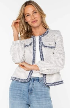 Cream Navy Boucle Collarless Frayed JacketÂ