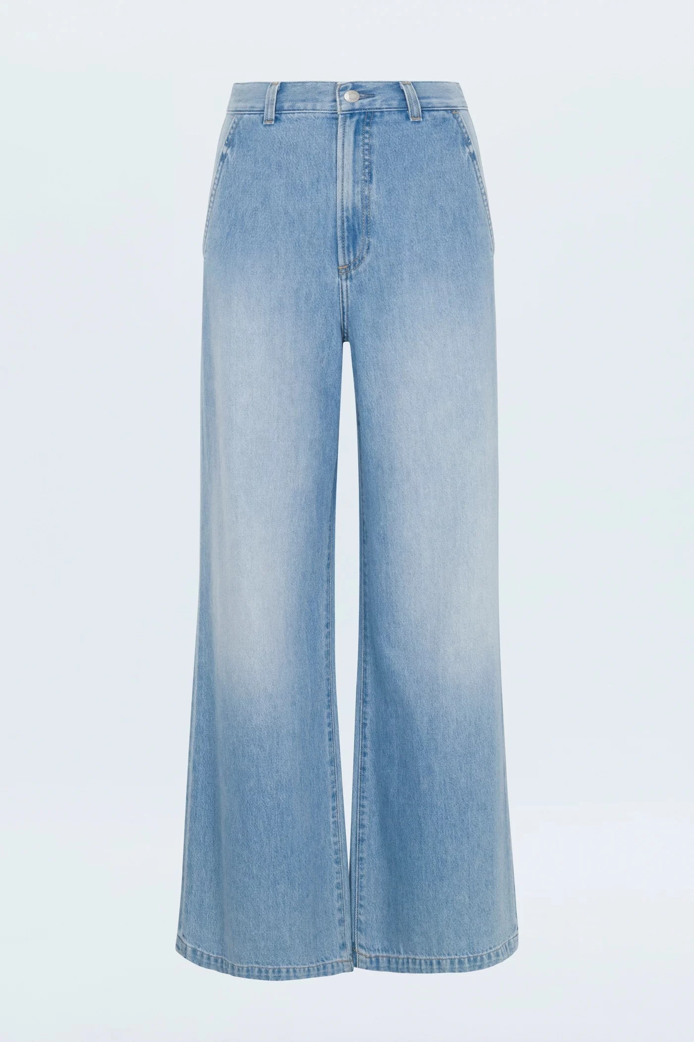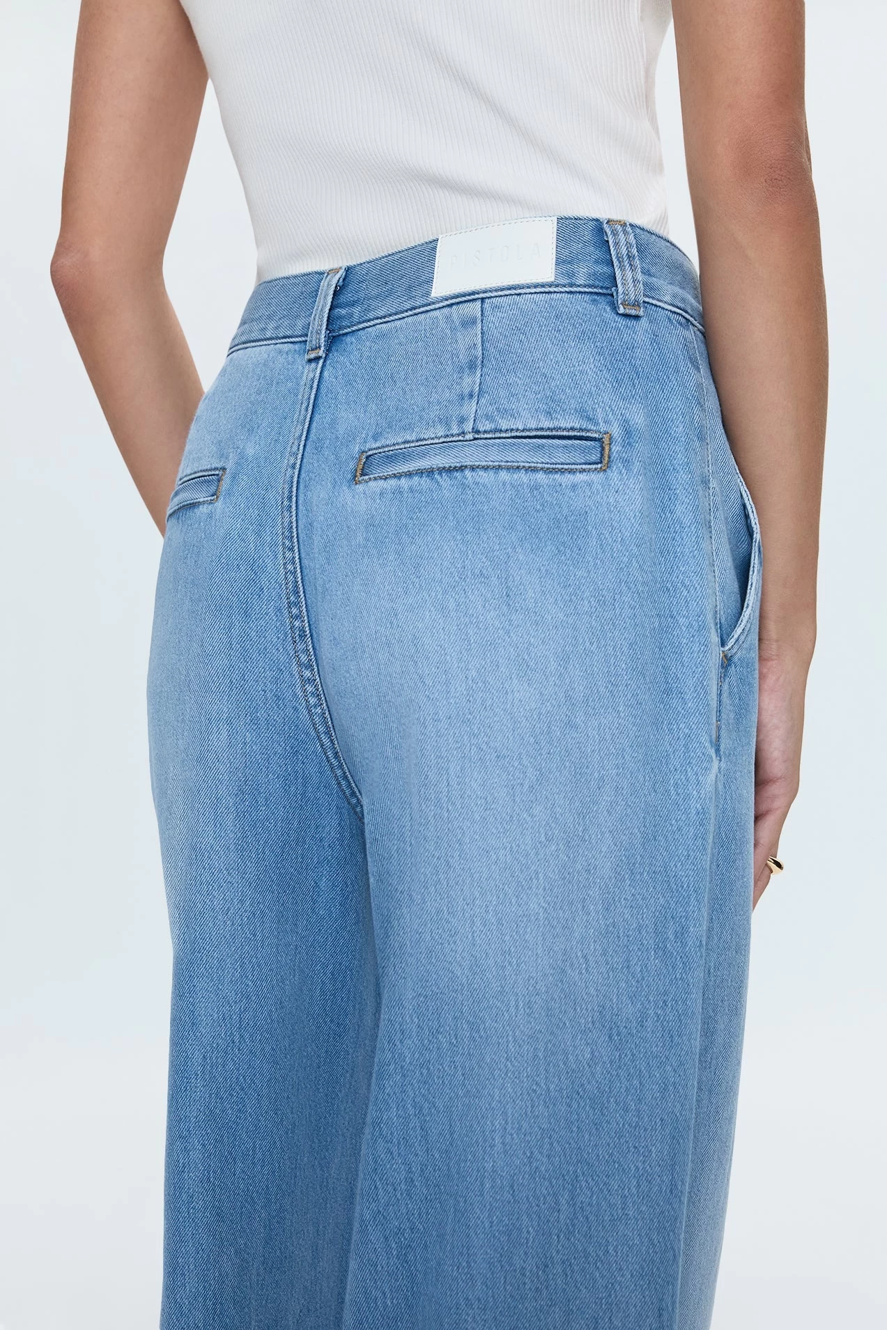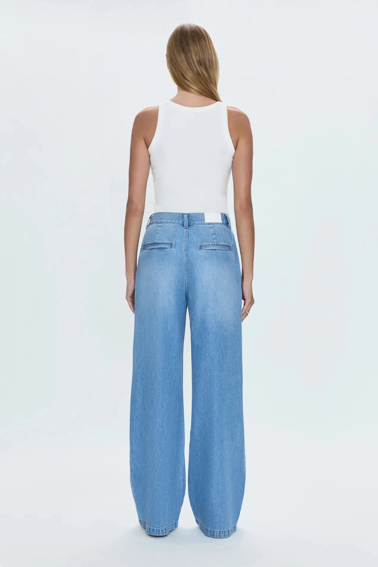 Introducing our Dalia High Rise Trouser – a luxurious and exclusive denim trouser that combines comfort and style. Made from a soft tencel blend in a subtle mid indigo color, and featuring clean trouser details, this wide leg jean takes sophistication to the next level. Available in “Palo Alto” color.