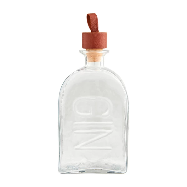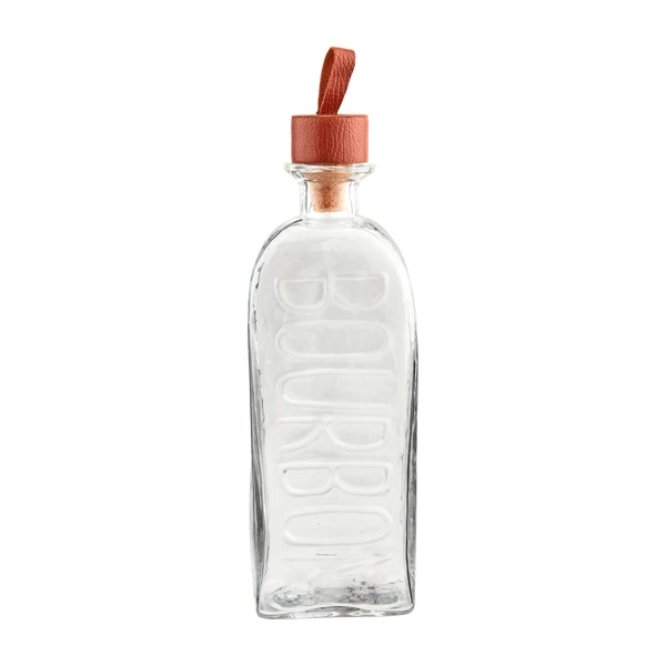 Add a touch of sophistication to your home bar or liquor collection with the Decenter. Crafted from high-quality glass, it boasts an elegant embossed design and a cork stopper with a genuine leather loop topper for a charming rustic feel. Treat yourself or gift it for a special occasion.