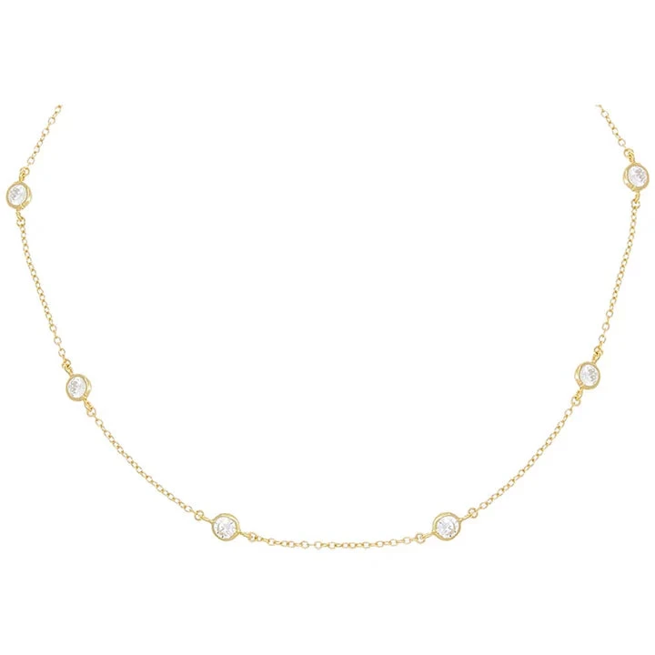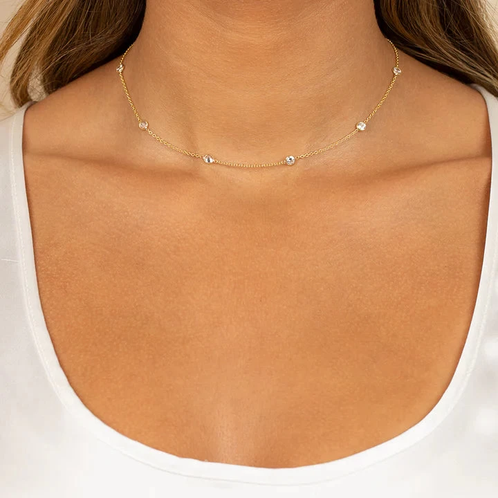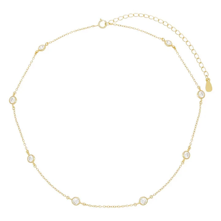 Your go-to layers just got a brilliant upgrade in Adina Eden’s Diamond By The Yard Choker. This stunning necklace features a series of dazzling bezel CZ pendants set into a delicate gold-plated chain. Layer up your favorite chains and lariats with this gem for a stunning view that adds both elegance and sparkle to any ensemble. A must-have piece for effortlessly elevating your jewelry collection with a touch of sophistication.