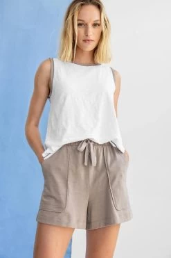 Upgrade your spring wardrobe with our Elastic Waist Shorts in Driftwood. Made from our premium Textured Knit fabric, these versatile shorts are perfect for warm weather getaways or leisurely lounging at home. Experience comfort and sophistication like never before.