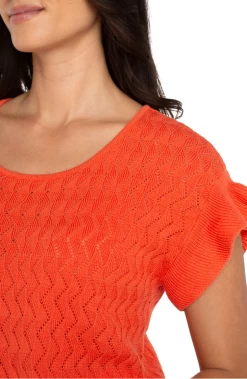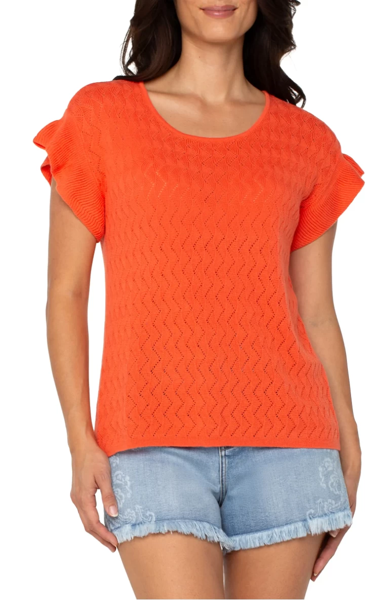 The Flutter Dolman Sleeve Sweater in Clementine by Liverpool is a lightweight statement piece that brings feminine charm and effortless style to any wardrobe. Featuring frill-trimmed dolman sleeves for graceful movement and crafted with delicate pointelle stitching, this women’s sweater blends texture and softness in a vibrant Clementine hue. Perfect for layering or wearing on its own, it’s a chic choice for transitional weather and elevated everyday looks.