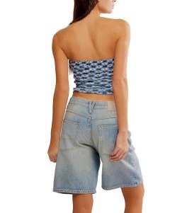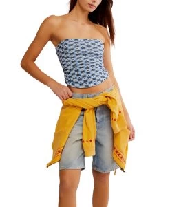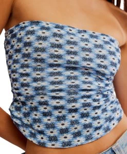 Elevate your wardrobe with our Blue Vista Boulevard Tube Printed. Crafted from a timeless printed knit, its slim and cropped fit flatters every silhouette. The tube style and ruched detailing at the sides add a touch of elegance. Versatile and chic, pair it with anything from jeans to a maxi skirt for a sophisticated look.
