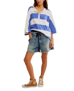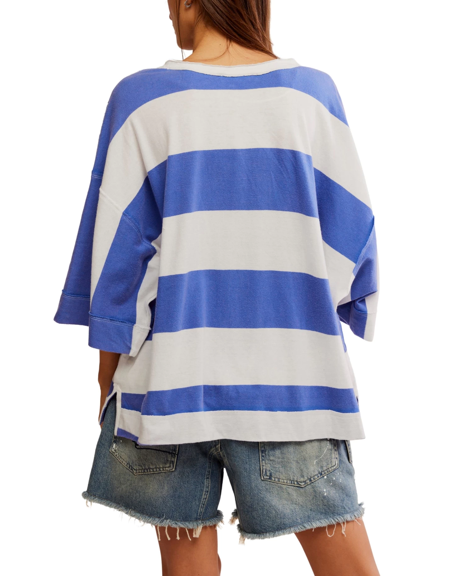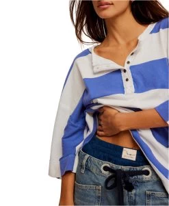 Introducing the Blue Wonderful Tee by Free People, a must-have addition to your wardrobe. This relaxed fit tee boasts a collared neckline and summary-front placket, perfect for transitioning effortlessly between seasons. The oversized silhouette and cuffed hems make it a versatile staple for any occasion.
