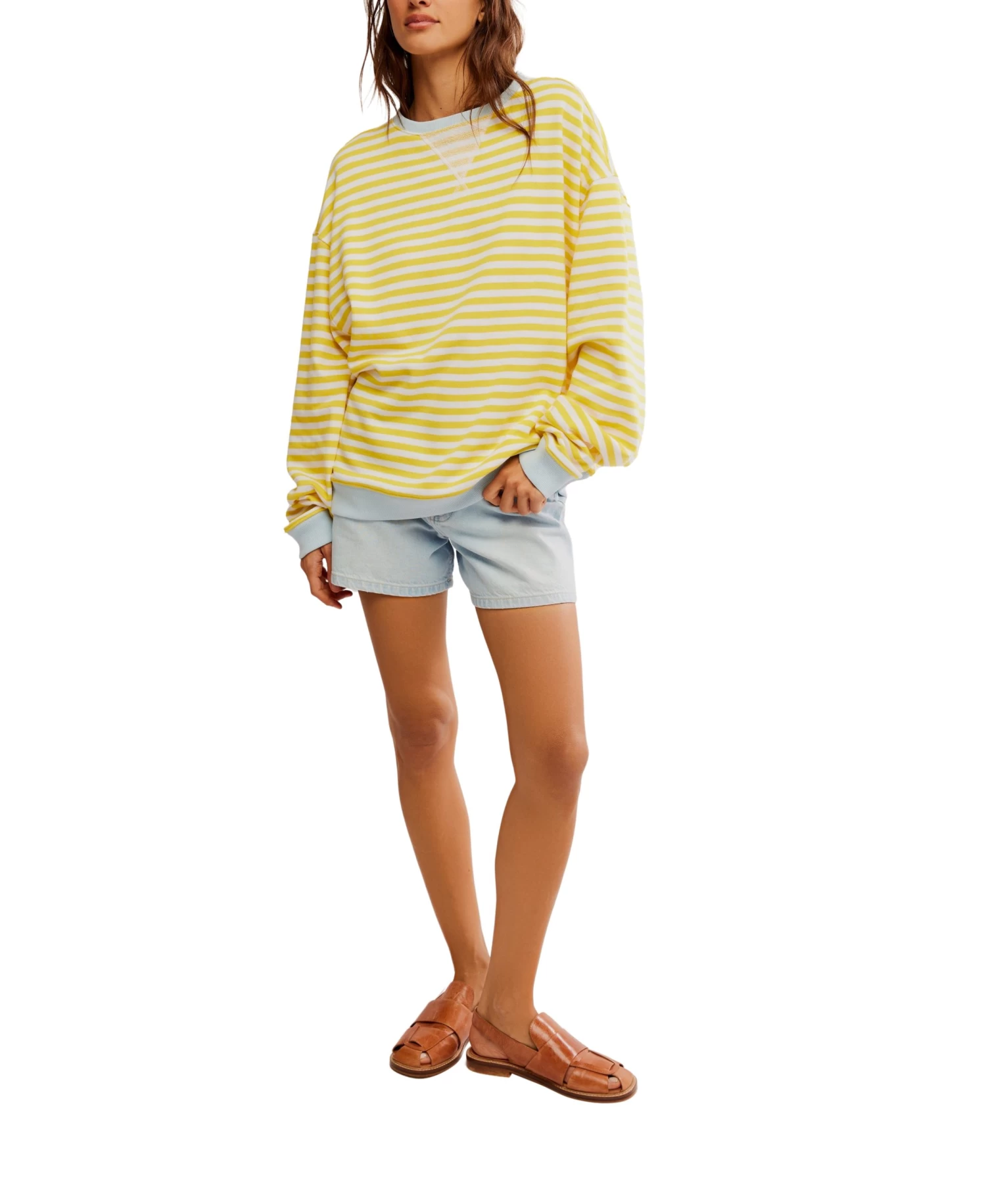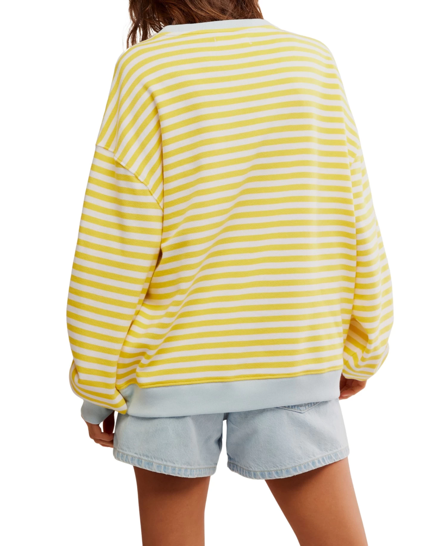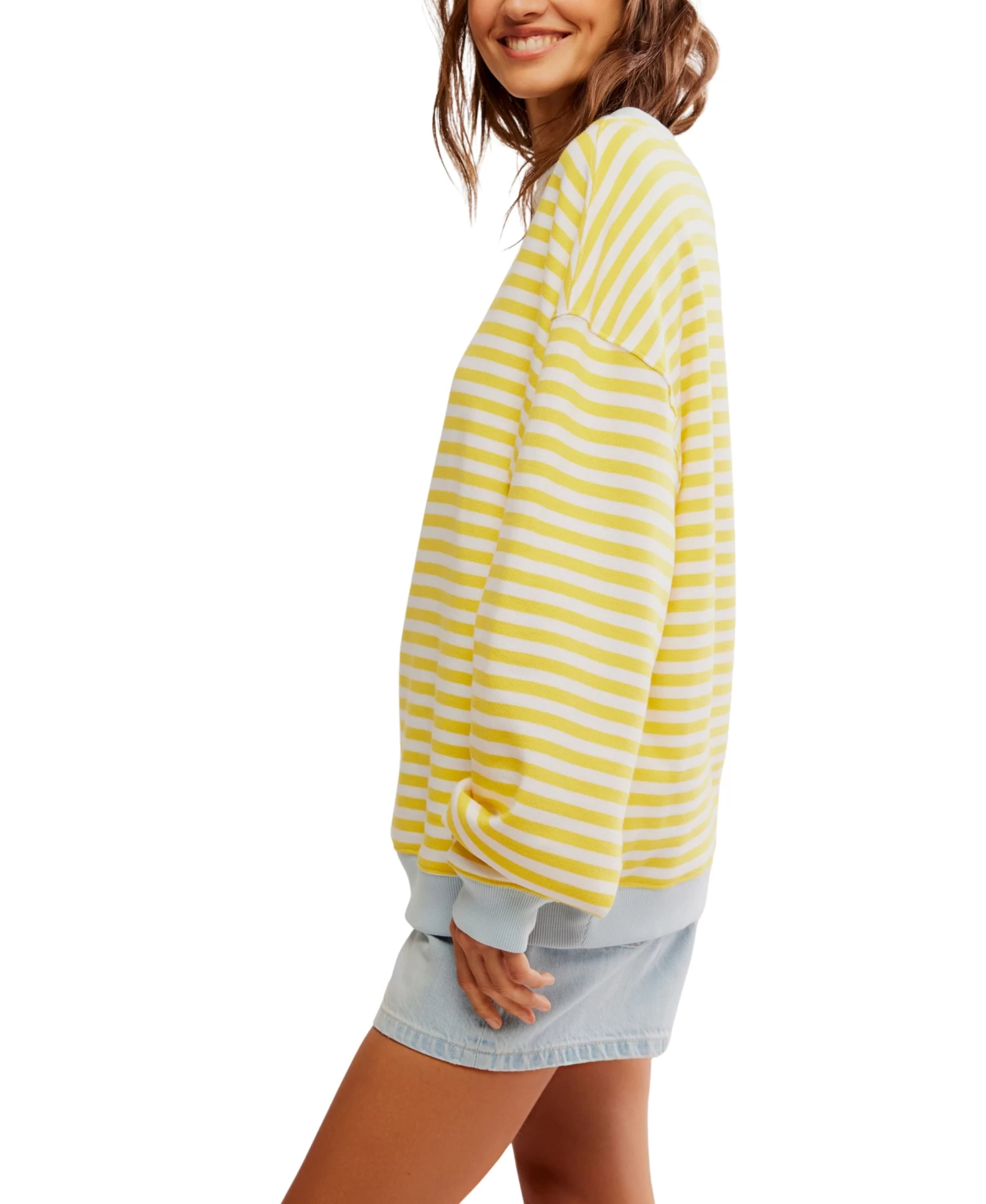 The Classic Striped Oversized Crewneck in Dandelion by Free People is the ultimate blend of comfort and effortless style. Featuring a relaxed, oversized fit, this women’s crewneck sweater is designed with a staple striped print, dropped shoulders, and contrasting hems for a touch of added dimension. Whether layered up or styled solo, this cozy essential is a go-to piece for laid-back days and easy, everyday looks.