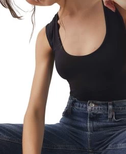 Introducing the Clean Lines Muscle Cami in Black. With a buttery soft feel and stretchy fabric, this scoop-neck tank offers both style and comfort. The seamless design and wide shoulder straps provide support for a formfitting, hip-length fit. A must-have staple for every wardrobe.