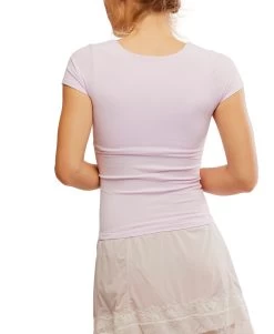 The Clean Lines Baby Tee in Falling Petal from Free People is a wardrobe must-have. Made from ultra-soft, buttery fabric, this seamless tee features a slim-fitting silhouette, square neckline, and cap-inspired sleeves for a chic, modern look. The hip-length cut and lining at the bust offer both style and subtle support. The soft Falling Petal hue pairs perfectly with everything from jeans to skirts. Part of Free People’s collection, this tee combines luxurious comfort with effortless style.