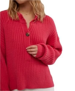 Curl up in luxury with our Cocoa Henley in Pink. This ribbed, oversized pullover provides ultimate comfort and style with its summary details. Keep warm on cooler days with this must-have addition to your wardrobe.