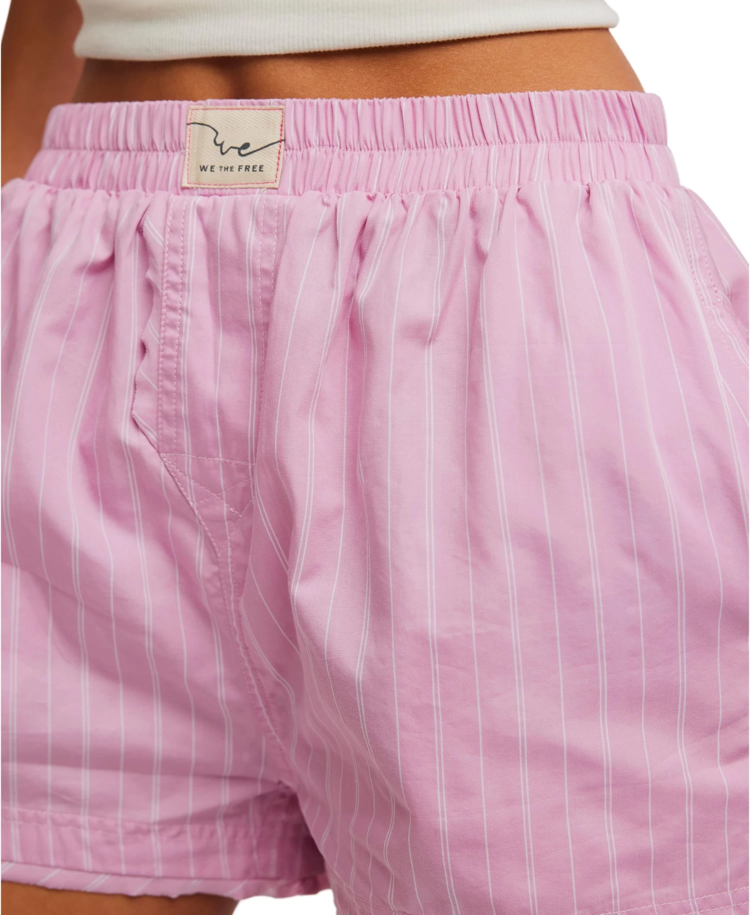 Our favorite laid-back option in the perfect print. An absolute staple from by Free People these classic striped Day to Day Boxer shorts are made of comfy cotton and feature an elastic waistband and logo tag detail.