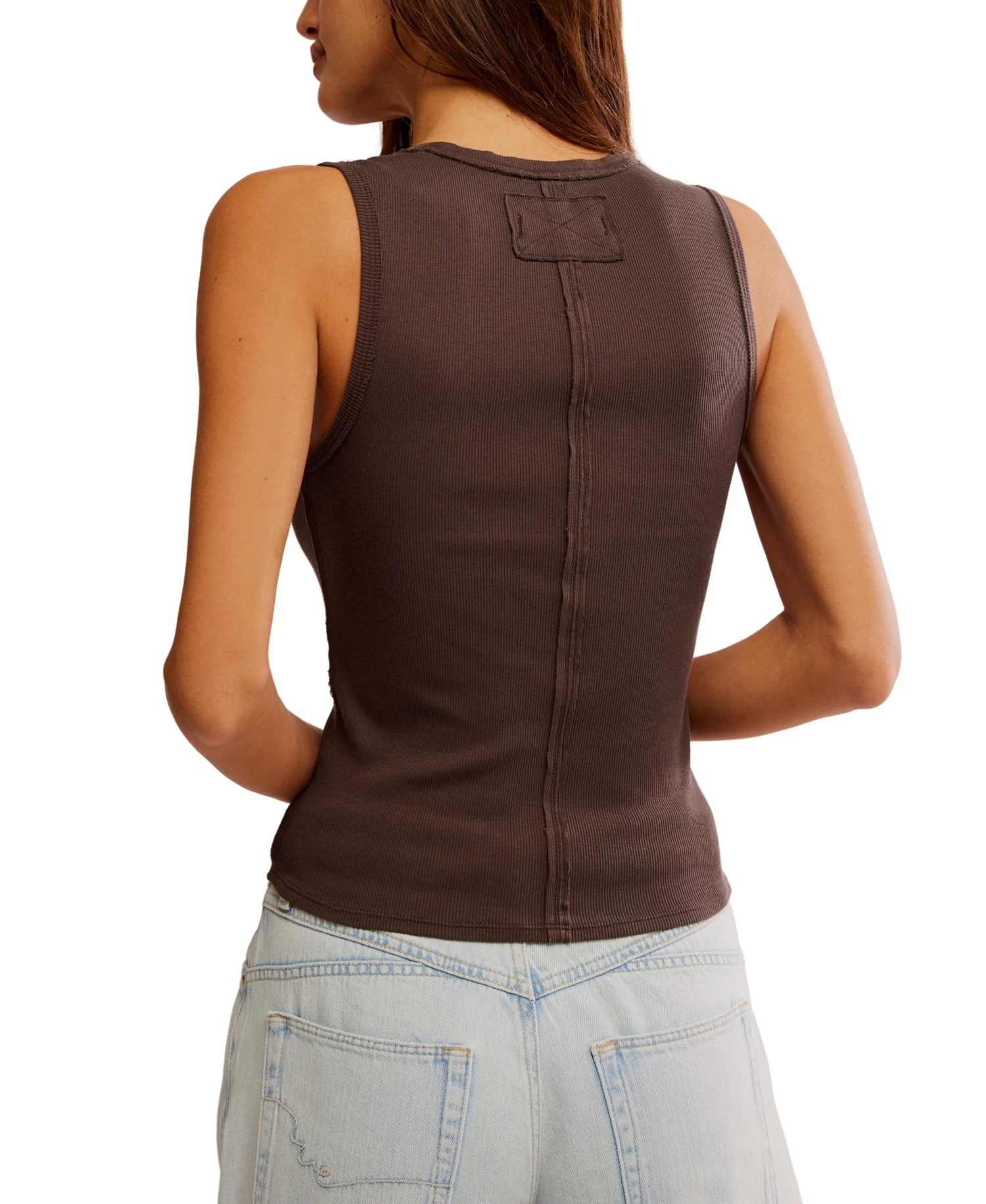 Indulge in luxury with the Double Espresso Neria Tank by Free People. This slim-fit tank features a V-neckline, raised seams, and dropped armholes, making it a versatile addition to your wardrobe. From casual days in your favorite jeans to cozy nights in lounge bottoms, this tank offers endless options for an effortless and stylish look—a must-have essential from FP.