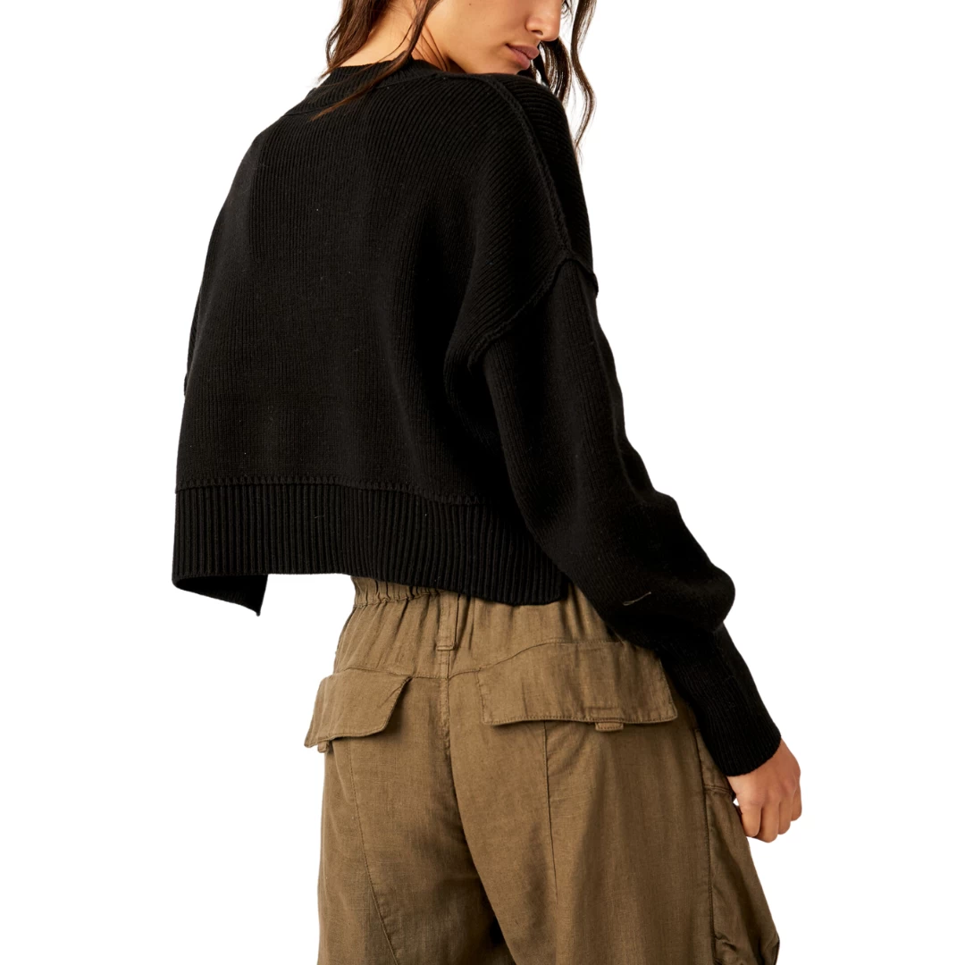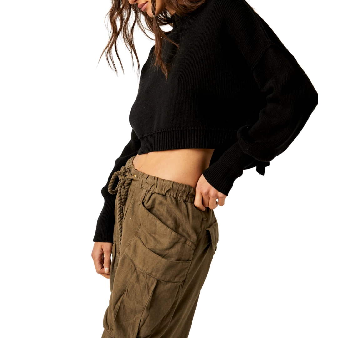 Enjoy timeless style with the Easy Street Crop Pullover in Black. This essential sweater combines coolness and classic vibes, making it a must-have piece in your wardrobe. The slouchy and cropped silhouette adds a contemporary touch, while the ribbed knit fabrication ensures a comfortable and cozy fit. Designed with a mock neckline, this pullover exudes sophistication and adds a polished element to your outfit. The defined seaming enhances the overall structure and shape, while the slightly exaggerated sleeves bring a subtle yet stylish detail. Pair it with high-waisted jeans or skirts for a chic and casual look, or dress it up with tailored pants and heels for a more polished ensemble. Its cropped length allows for easy layering and offers endless styling possibilities.