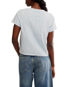 Introducing the Everyday Tee by Free People, a semi-cropped and boxy fit shirt with a washed finish for a lived-in look. Its washed cotton jersey fabric, crew neckline, and relaxed short sleeves make it the perfect blank canvas for versatile outfitting. Elevate your wardrobe with this effortless and chic essential.