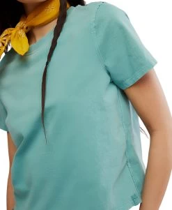 Laid-back and effortlessly cool, the Everyday Tee in Mineral Blue by Free People is a relaxed, semi-cropped t-shirt made from soft, washed cotton jersey for that perfectly broken-in feel. Featuring a shrunken silhouette, crew neckline, short sleeves, and exposed seam detailing, this vintage-inspired tee adds a subtle pop of color to your casual wardrobe. Ideal for layering or wearing solo, it’s a timeless wardrobe essential that delivers easy, everyday style with a hint of edge.