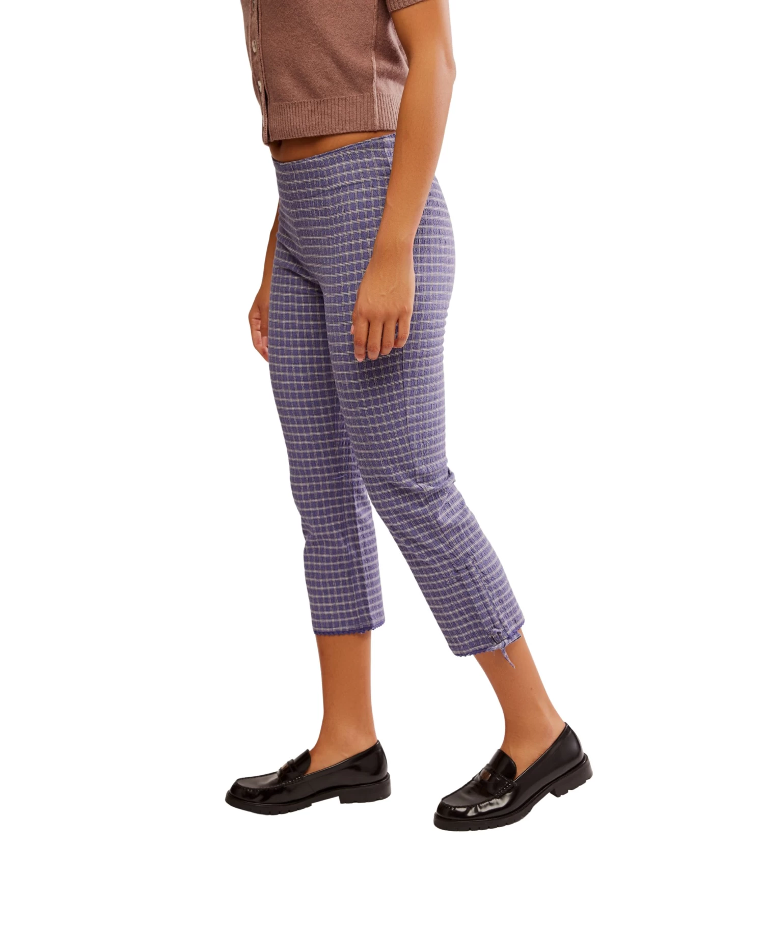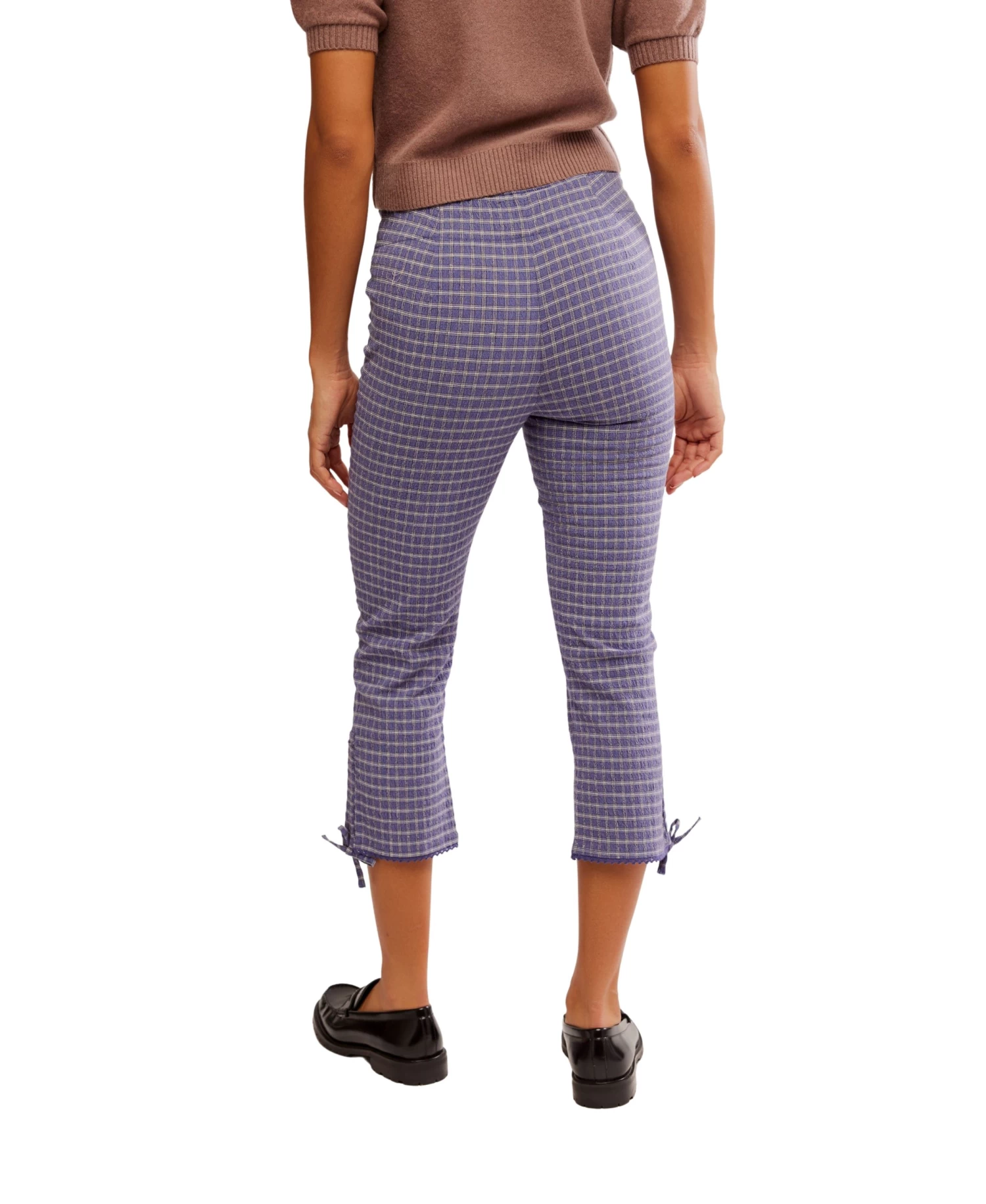 Introducing our Feeling Flirty Slim Capri by Free People, a retro staple that adds a touch of timeless style to your wardrobe. With a flattering slim fit, soft stretch fabric, and a chic plaid print, these mid-rise capris are perfect for transitioning from work to weekend. Enjoy the convenience of an elastic waistband and tie detail at the sides. Elevate your look with this must-have piece.