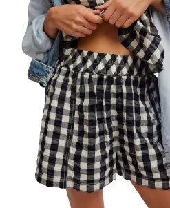 Elevate your wardrobe with our Get Free Seersucker Pull On shorts by Free People. The mid-rise, relaxed boxer silhouette is effortless and versatile, perfect for any occasion. Featuring a pull-on design and soft seersucker fabric, these classic gingham shorts offer endless styling options. Pair with a tee for a casual look or a billowy blouse for a statement outfit. A must-have for any fashion-forward individual.