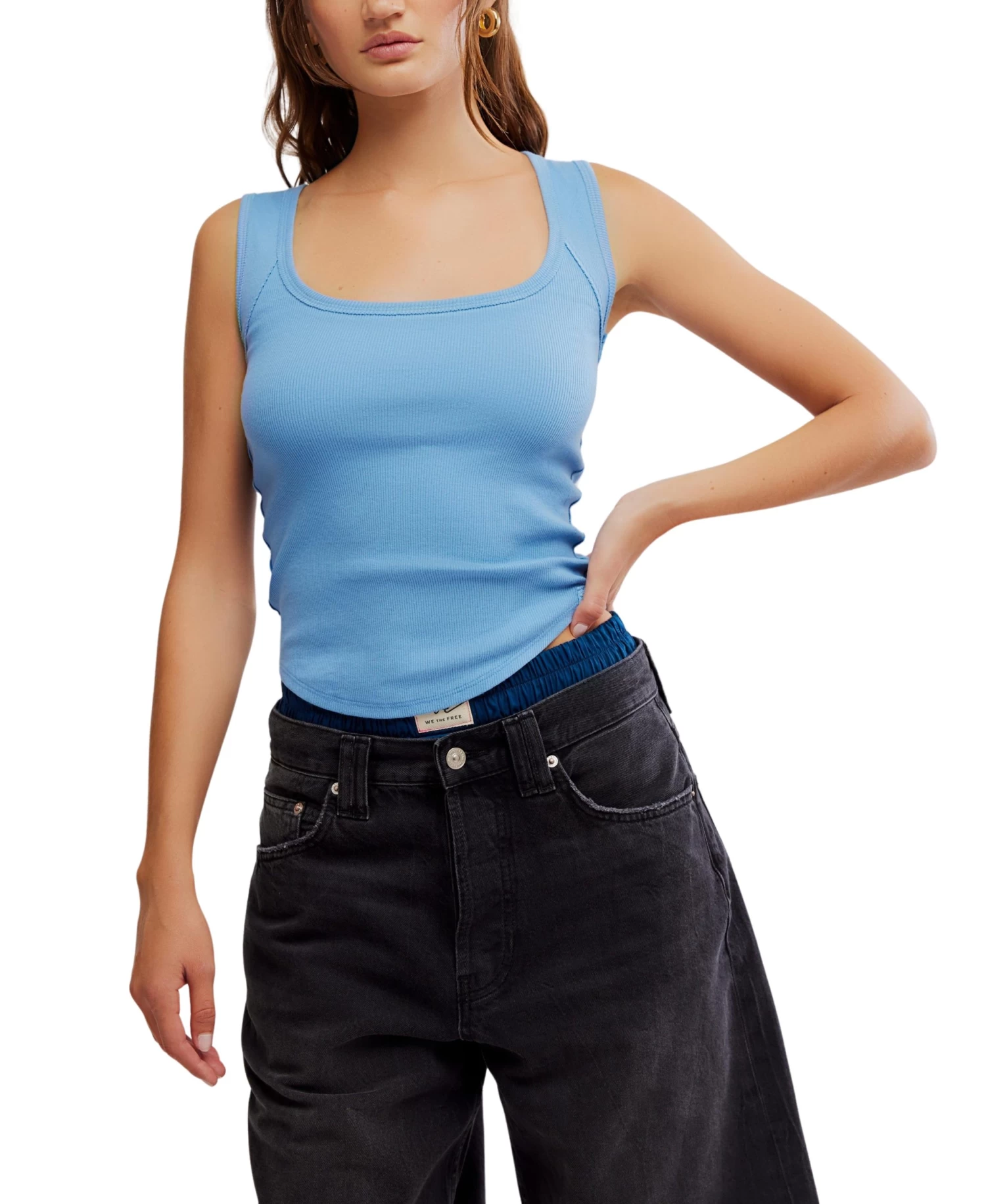 Indulge in luxury with our Hummingbird Tee in Allure Blue by Free People. This timeless tank is elevated with a ribbed knit fabrication, scoop neckline, and defined seaming for a lived-in look. Its relaxed, classic fit makes it effortlessly essential, perfect for layering or wearing solo. Elevate your tops collection with this sophisticated and exclusive piece.