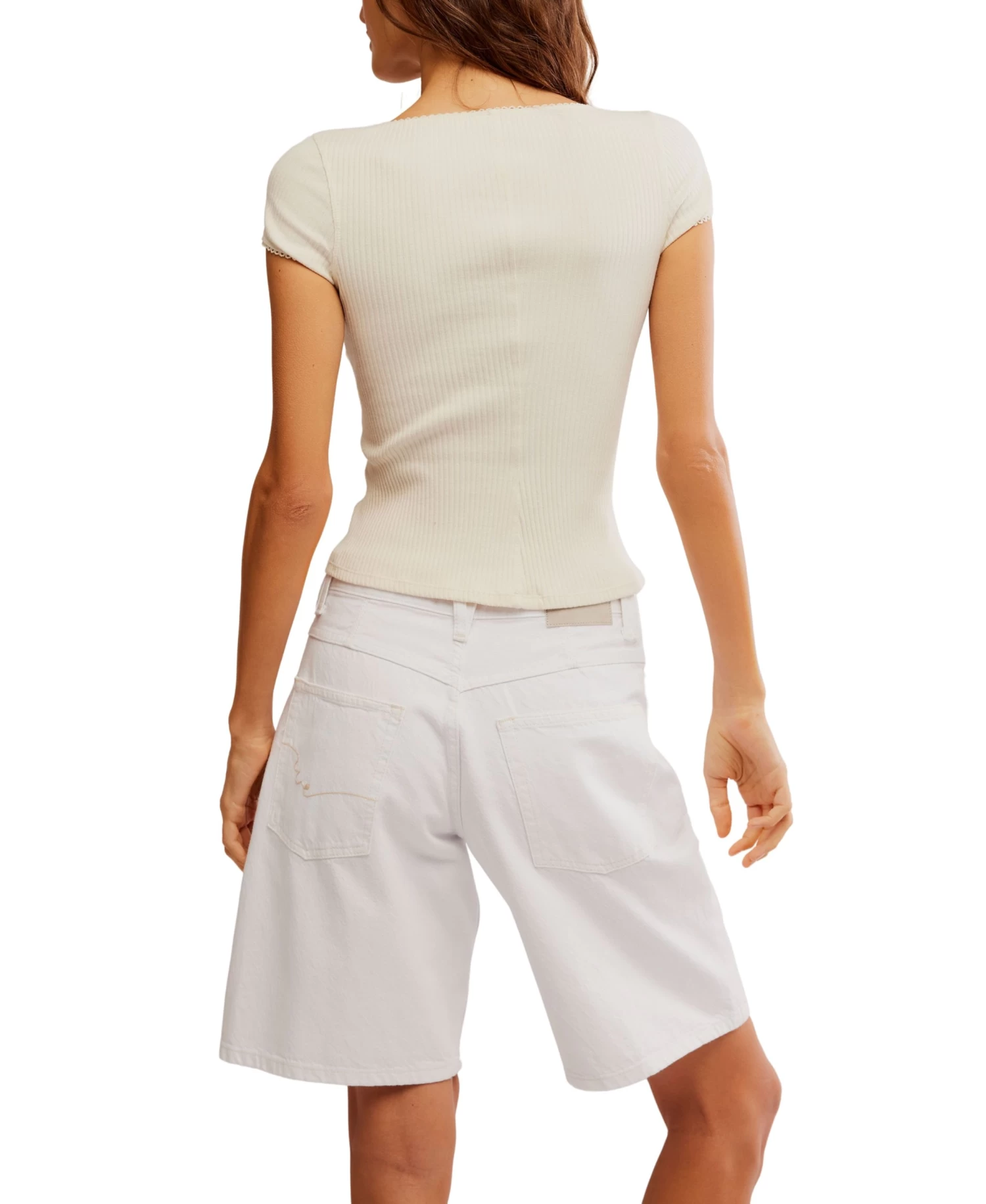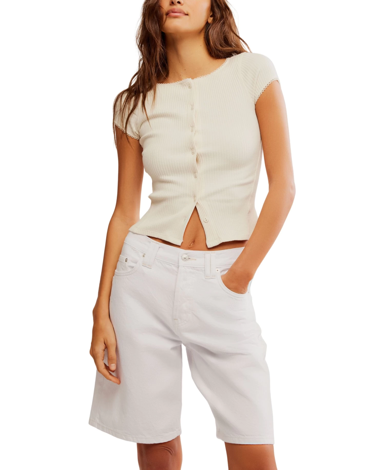 Indulge in luxury with Free People’s Ivory Most Wanted Cardi by Free People. It’s a cute and classic design featuring a hugging ribbed fabric, capped sleeves, and a summary-front closure for a form-fitting, full-length look. Perfect for layering or as a stand-alone piece, this darling option of ribbed sweater fabrication and crew neckline with picot trim will indeed become your favorite wardrobe essential. Made with our softest intimates and best-ever base layers from our in-house label, Intimately.