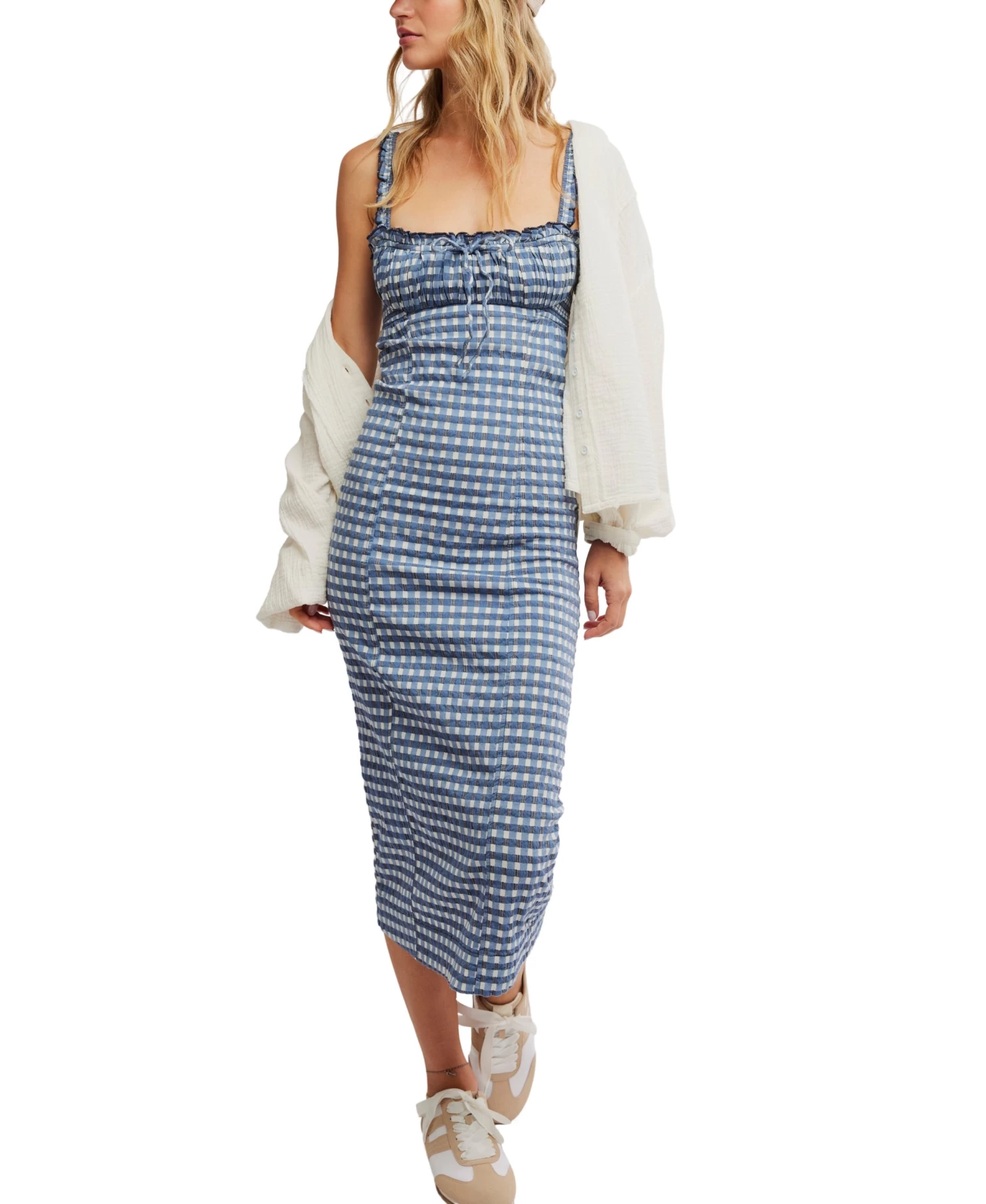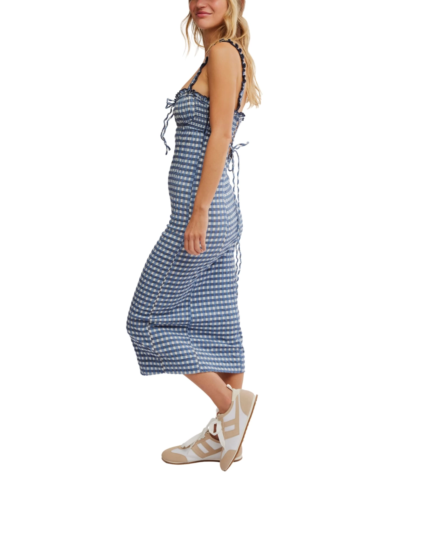 Indulge in the luxurious charm of the Lucinda Mid by Free People. Featuring a timeless plaid print, this dress boasts a fitted silhouette accentuated by a square neckline and pleating. The keyhole detail and ruffled shoulder straps add a sweet touch. Perfect for any event, it’s the ultimate desk-to-dinner outfit.