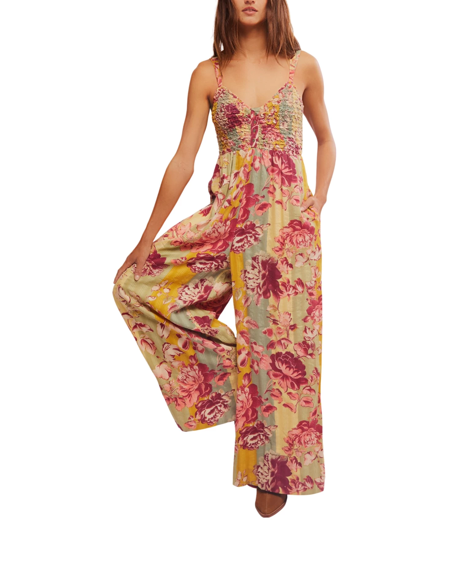Indulge in effortless elegance with our Melrose Jumpsuit. The crinkled bodice smocking adds a touch of sweetness to the silhouette, while the flowy wide legs provide graceful movement. Perfect for summer, this sleeveless jumpsuit is a must-have for any sophisticated wardrobe.