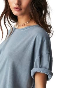 Indulge in luxury with our Nina Tee in Blue Mirage by Free People, this staple piece features a boxy, oversized fit and a cozy cotton fabrication. The crew neckline and dropped shoulders add to its effortless sophistication. Perfect for any wardrobe, this tee is versatile and can be dressed up or down.