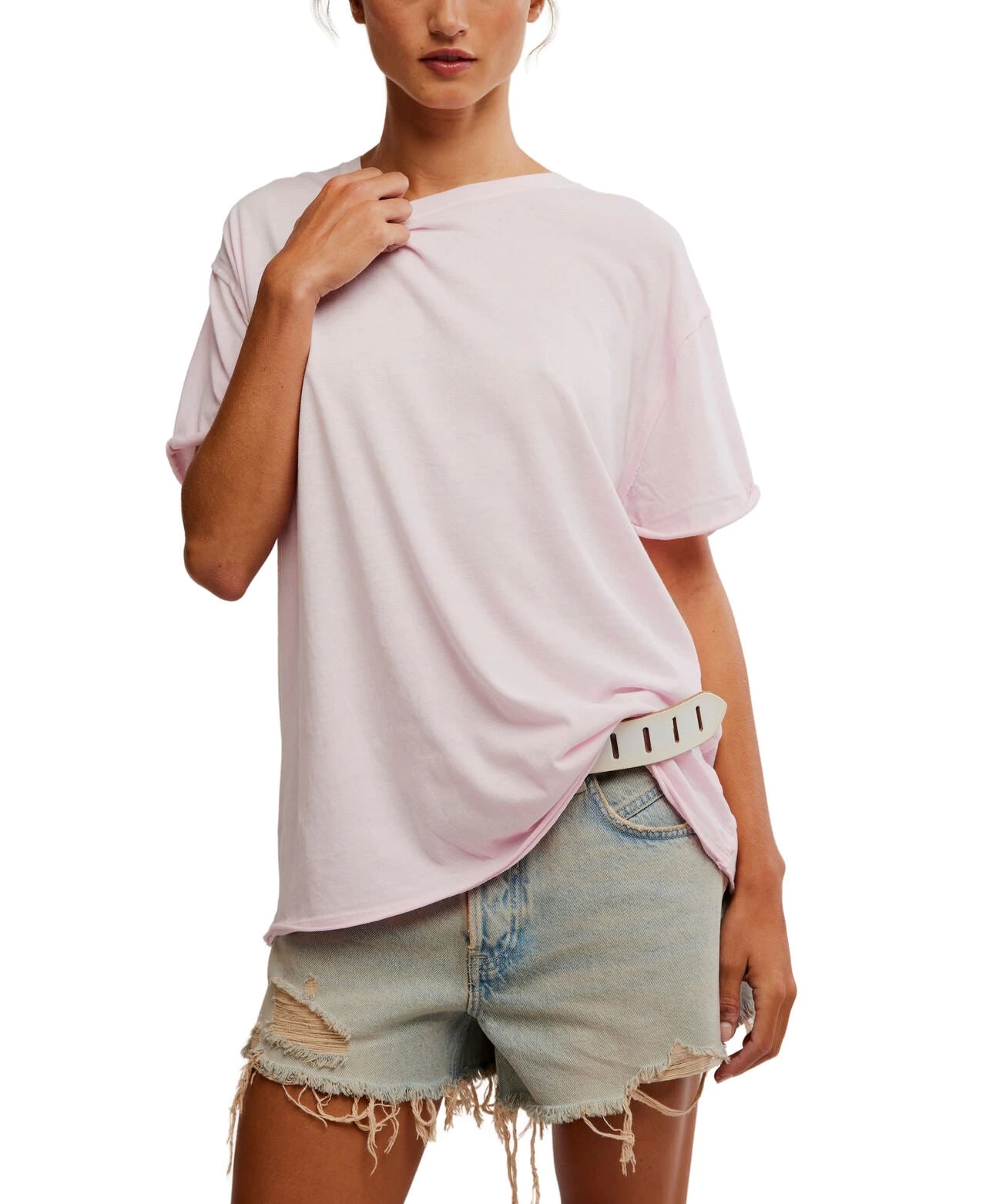 Indulge in luxury with our Nina Tee in Pink. This staple piece features a boxy, oversized fit and a cozy cotton fabrication. The crew neckline and dropped shoulders add to its effortless sophistication. Perfect for any wardrobe, this tee is versatile and can be dressed up or down.