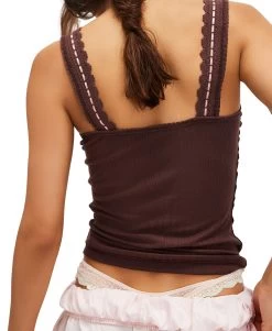 The Only You Tank in French Roast by Free People is a simple yet sweet piece, featuring a sheer ribbed cotton knit with ribbon-adorned lace trim. This form-fitting, full-length tank has a scoop neckline and delicate lace straps with ribbon detailing, making it a feminine twist on a classic wardrobe staple. Perfect for layering or wearing solo, it adds a touch of elegance to any look.