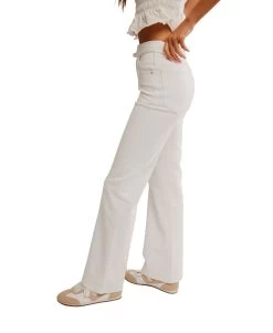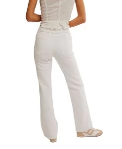 Introducing the Optic White Sabine Slim A Line Jean by Free people , a forever classic with a contemporary touch. These high-rise jeans feature a slim A-line fit, with a zip fly and summary closure and five-pocket design. With a self-tie waist belt and semi-rigid denim, they effortlessly elevate any look. Perfect with heeled boots or sporty sneakers, this jean is both versatile and stylish.