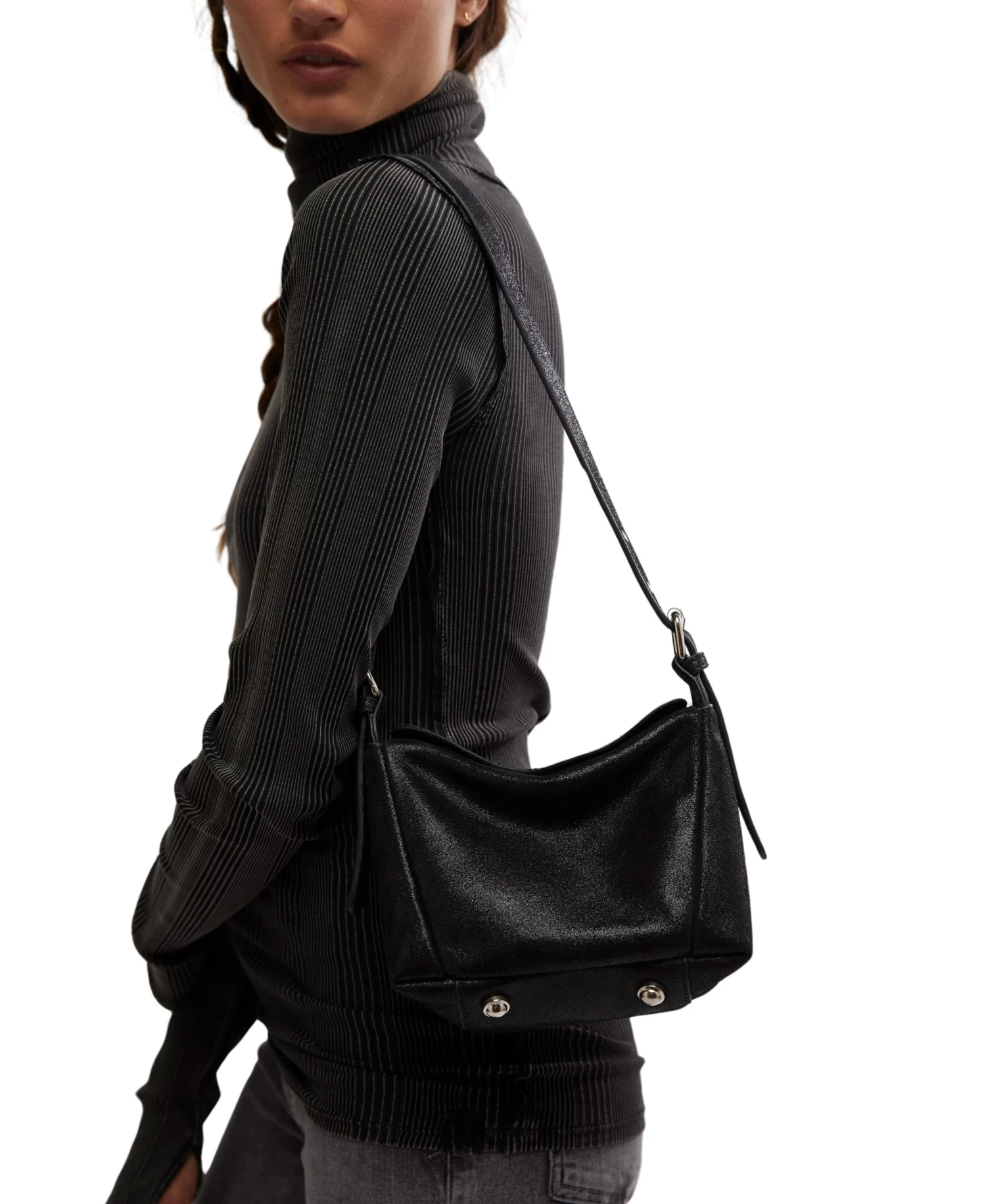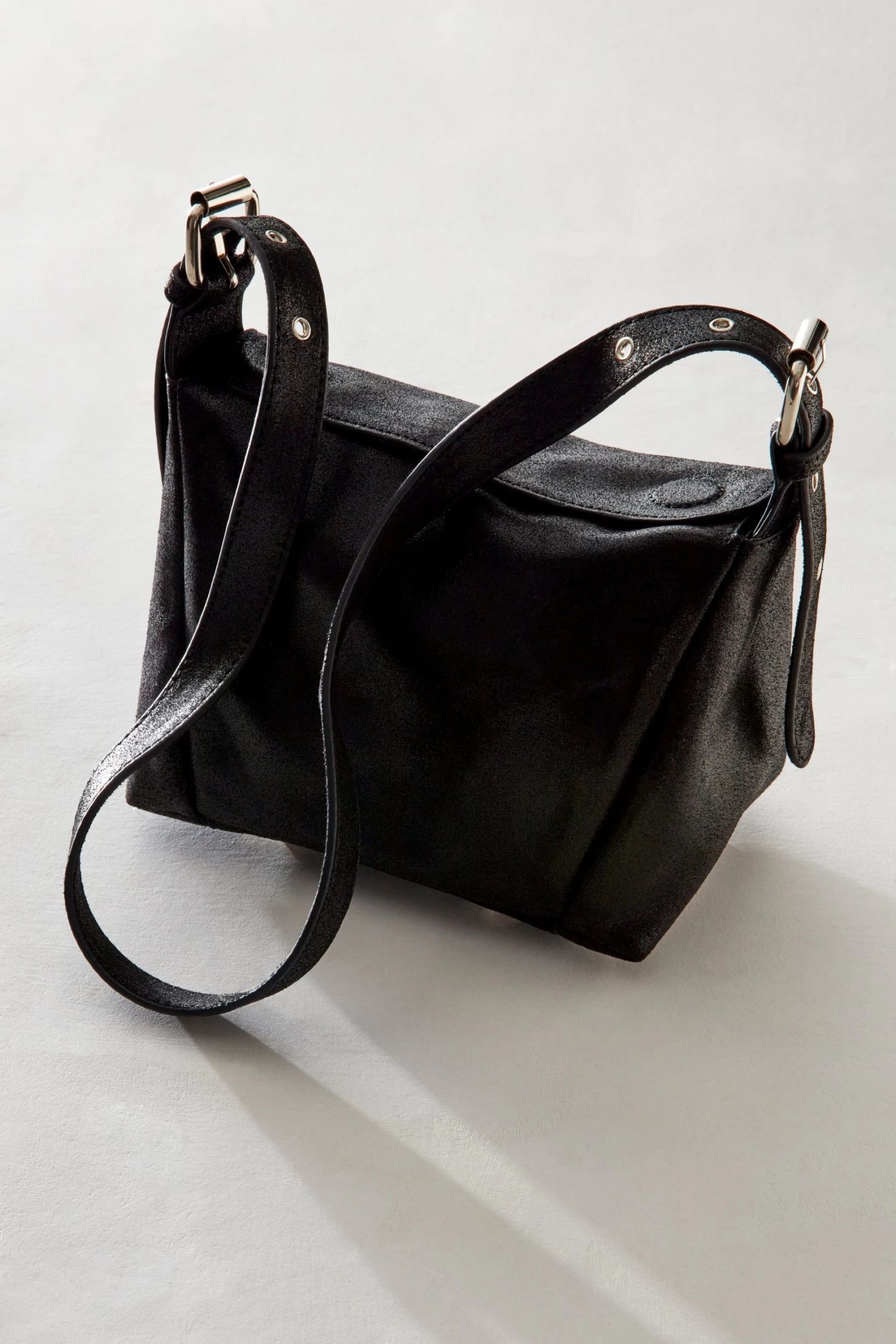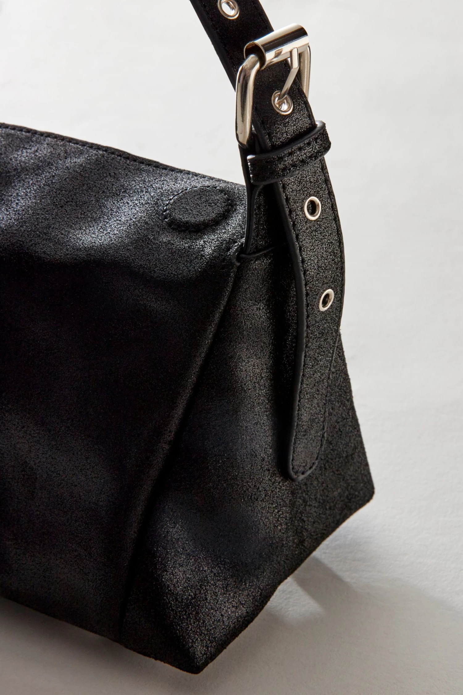 Indulge in luxury with the Sabi Shoulder Bag. With its square shape and adjustable grommet buckle strap, this leather bag exudes elegance and practicality. The magnetic summary snap closure and metal feet add a touch of sophistication, making it the perfect everyday accessory.