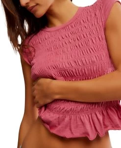 Elevate your wardrobe with the Soothing Petal Sylvie Tee. This slim-fit, slightly cropped tee features a soft cotton-blend, ruched detailing, and a ruffled hem for a feminine touch. With cap-inspired sleeves and exposed seam detail, it’s the perfect addition to any outfit. Feel confident and stylish in this elevated take on the classic tee.