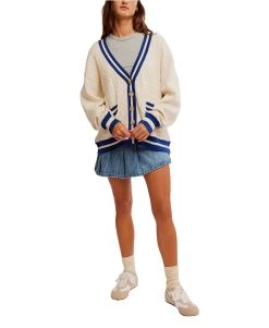 Elevate your casual wardrobe with our WTF Varsity Cardi by Free People Crafted from cable-knit fabrication and accented with varsity-striped trims, this relaxed, slouchy fit piece is the perfect blend of sporty and chic. Complete with a V-neckline, summary-front closure, and front pockets, it’s the ultimate statement piece for effortless style.