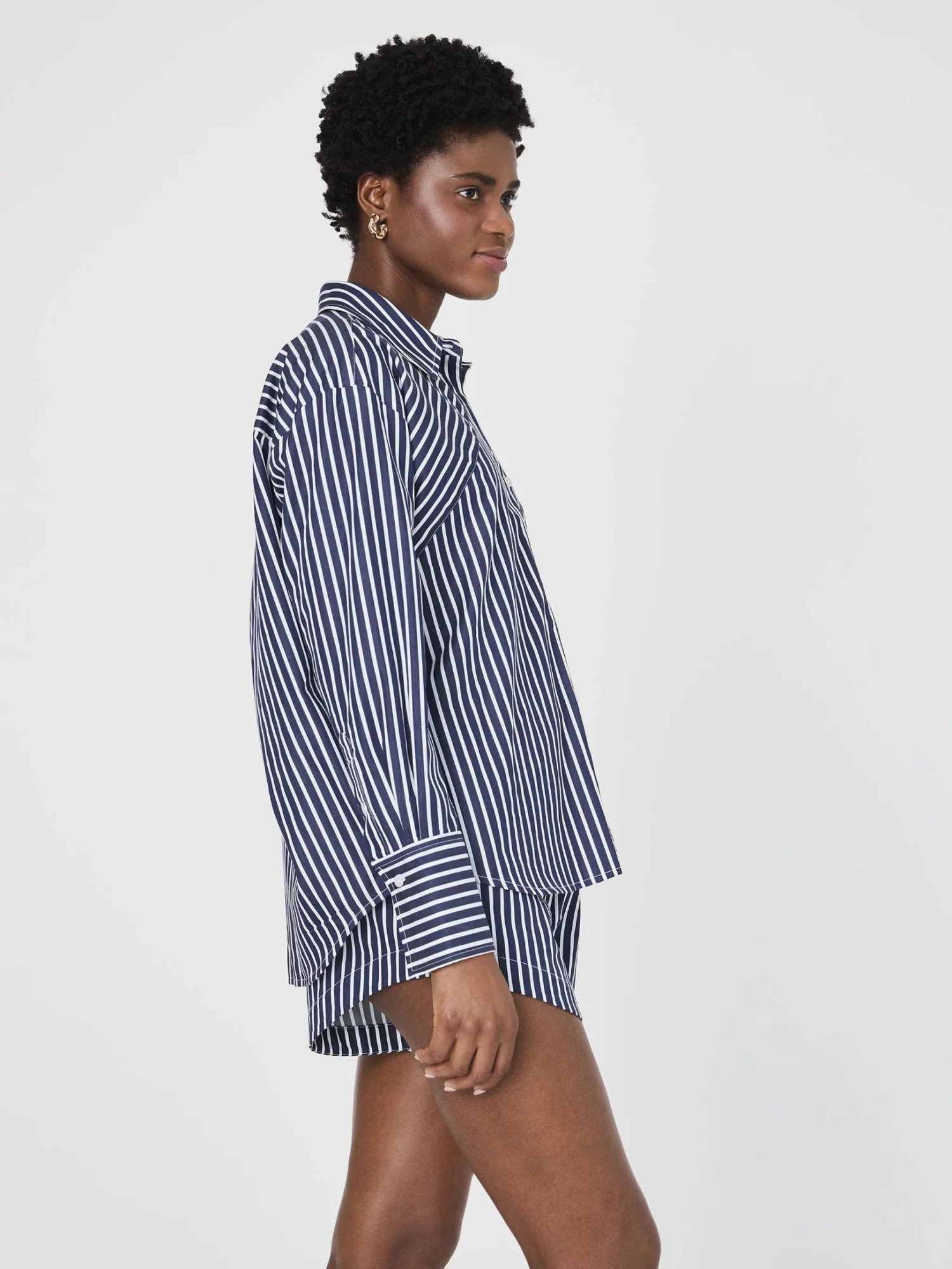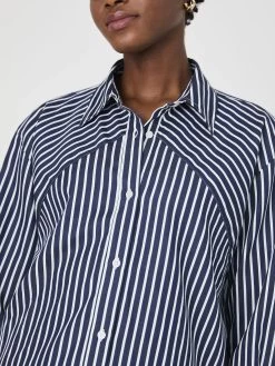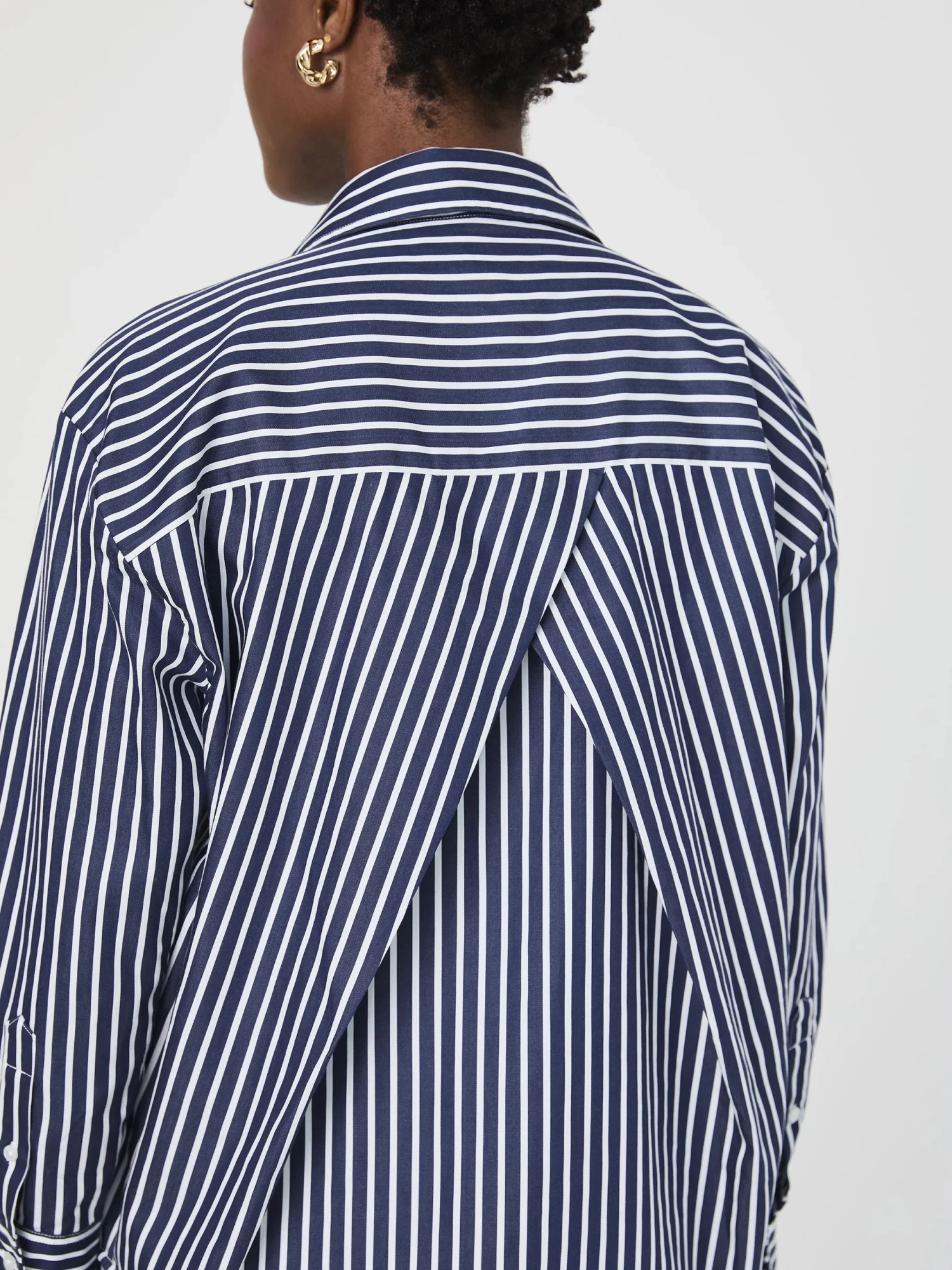 Alexis Cotton Angled Yoke Striped Shirt in Marine Summer WhiteÂ