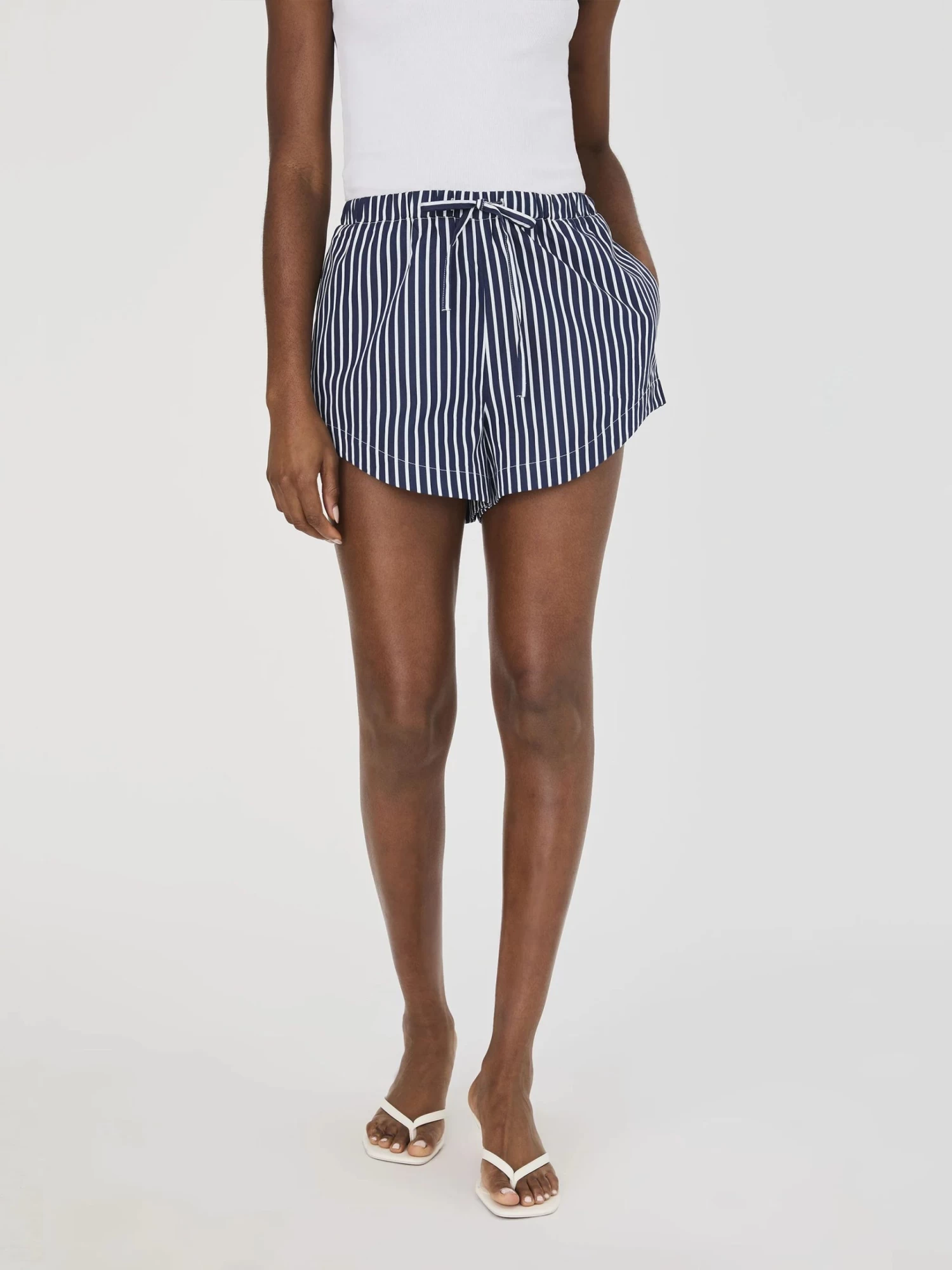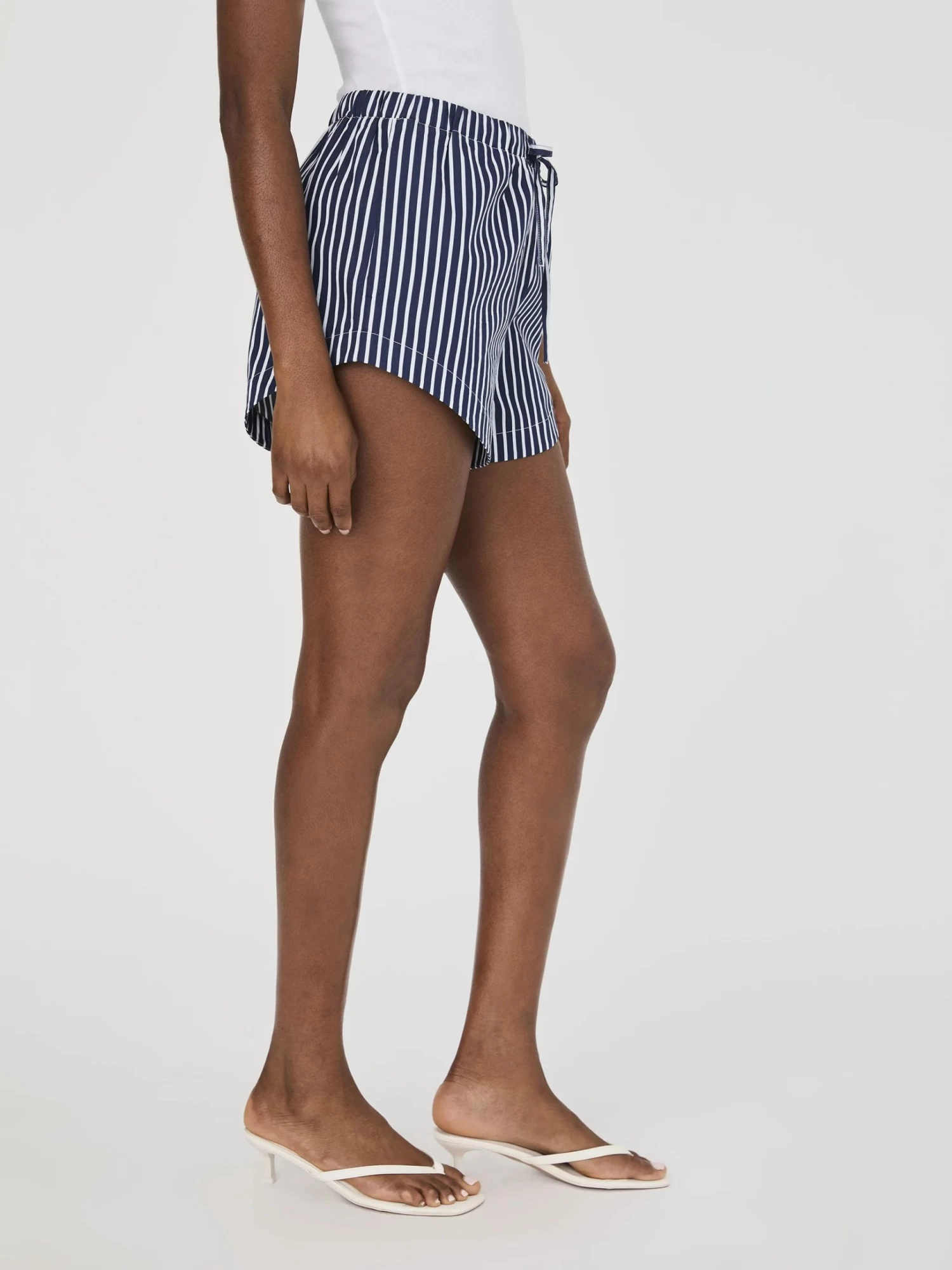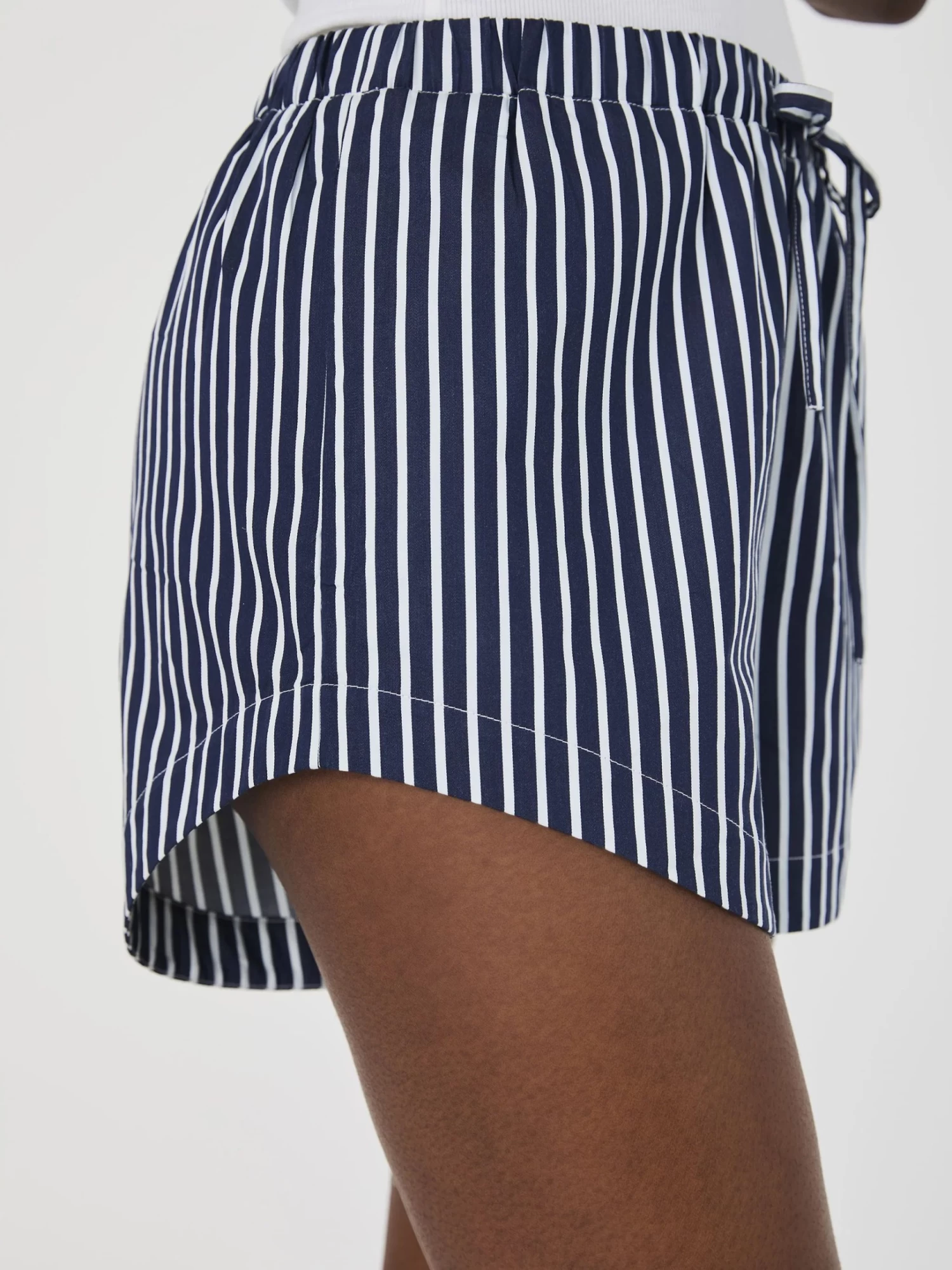 Alexis Cotton Drawstring Striped Shorts in Marine Summer WhiteÂ