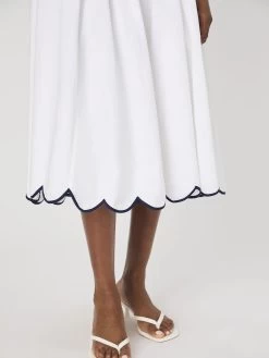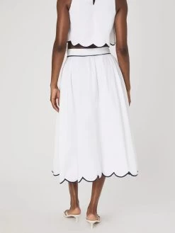 Alexis Cotton Scallop Midi Skirt in WhiteÂ