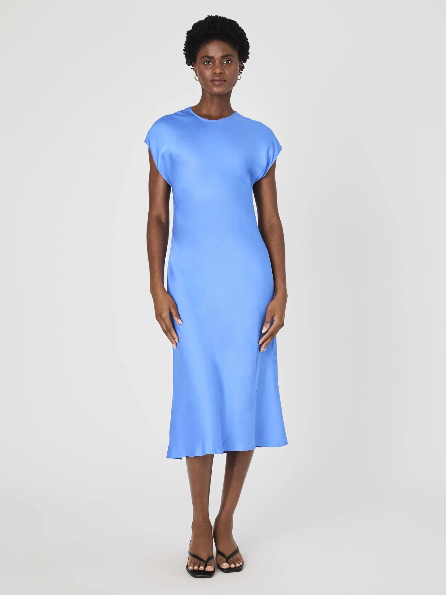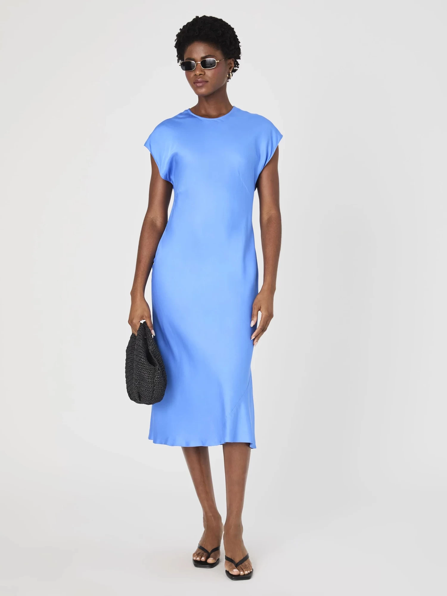 Book your dinner reservation and make sure you’ve invited the Ennis Satin Column Midi Dress in Ultramarine by French Connection! This bias-cut dress is the epitome of relaxed sophistication, featuring a classic column silhouette in sumptuous signature satin. The lightweight, silky fabric in a stunning blue hue offers a graceful, breezy fit, perfect for turning heads at any event. Made with ECOVERO™ viscose, a sustainable yarn from LENZING™, this dress combines style with eco-conscious materials. The back summary closure with keyhole and cap sleeves add refined finishing touches to this must-have midi dress.
