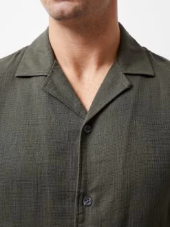 Stay cool and sharp in the Matty Weave Revere Shirt in Khaki by French Connection. This lightweight men’s summer shirt features breathable fabric, short sleeves, a relaxed revere collar, and classic summary-down fastening. Designed for warm days and easy style, it’s the perfect go-to for effortless summer outfits and vacation-ready looks.