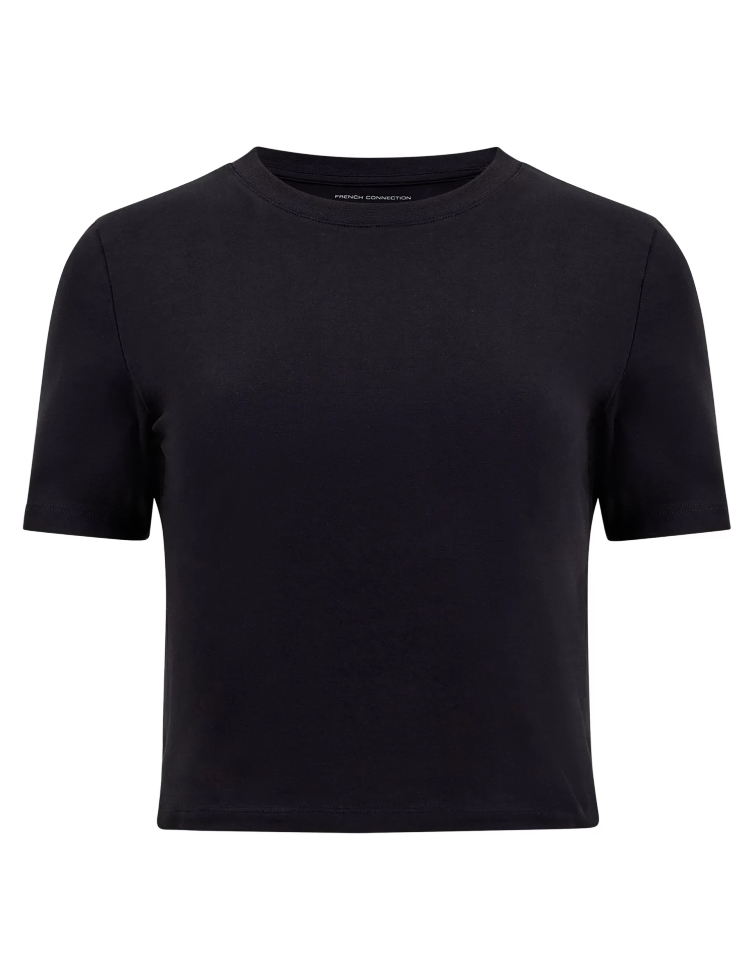 Indulge in the allure of simplicity with our Rallie Cotton Crew Tee in Black by French Connection. This everyday basic is crafted from the finest cotton, making it a must-have for your wardrobe. Its classic crew neckline and crisp white color make it a versatile choice that effortlessly complements any outfit. Upgrade your basics with the Rallie Cotton Crew Tee.