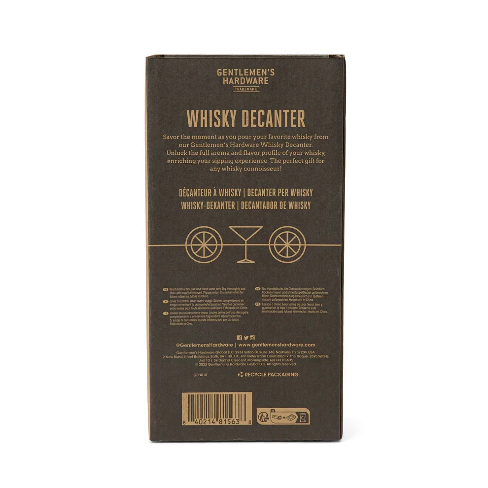 Elevate your at-home bar collection with our Whisky Decanter. Made with exquisite glass and an etched logo, this vintage-style decanter holds up to 850 ml of your favorite beverages. A show-stopping must-have that adds a touch of sophistication and style to any occasion. Cheers to luxury living.